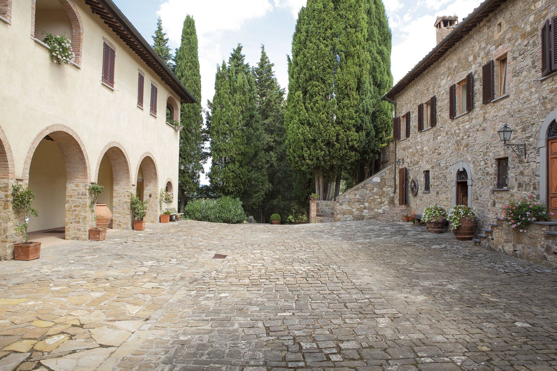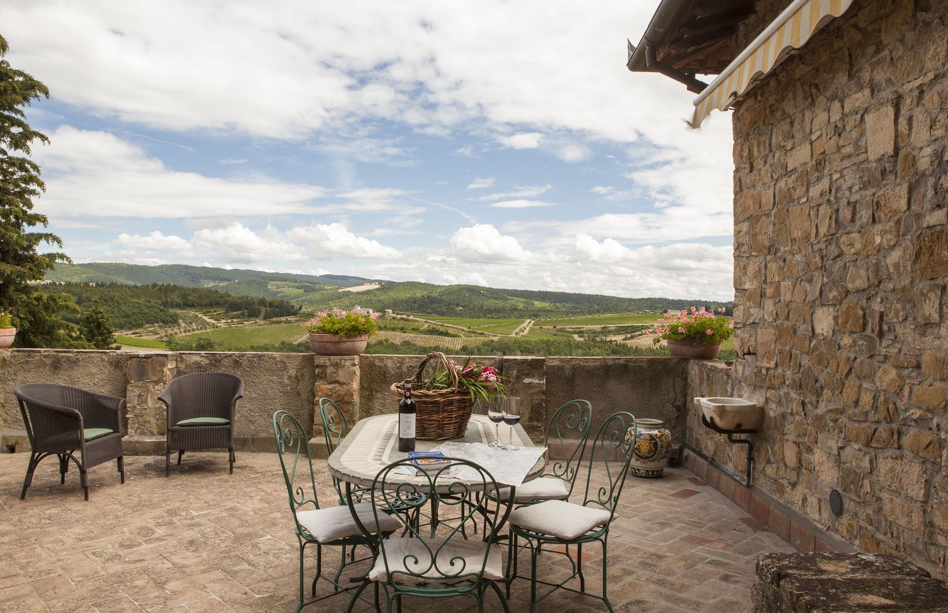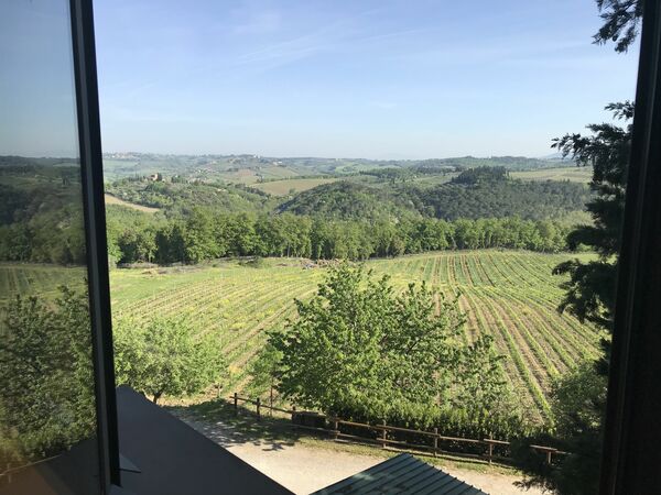 One particularly scenic and lovely winery in which one can do all of the above and more besides is the beautiful Castello di Monsanto. While the Castello di Monsanto actually dates back to the middle of the 18th century and wine production in the area goes back centuries, it is in the last fifty years that the estate has become home to the Bianchi family and their beloved wines. Located in Barberino Val d'Elsa, in western Chianti Classico, a bit northwest of Castellina in Chianti, this incredible historic castle was where founder Aldo Bianchi, a native of San Gimignano who had first left Tuscany before the Second World War to seek fortune elsewhere in the North of Italy, found himself at a wedding. Taking in the amazing views across at his hometown of San Gimignano, over the hills of the Chianti Fiorentino region, and right to Monte Amiata and the Apuan Alps from the terrace of the castle, Aldo fell in love. Within a few months, he owned the Castello di Monsanto.