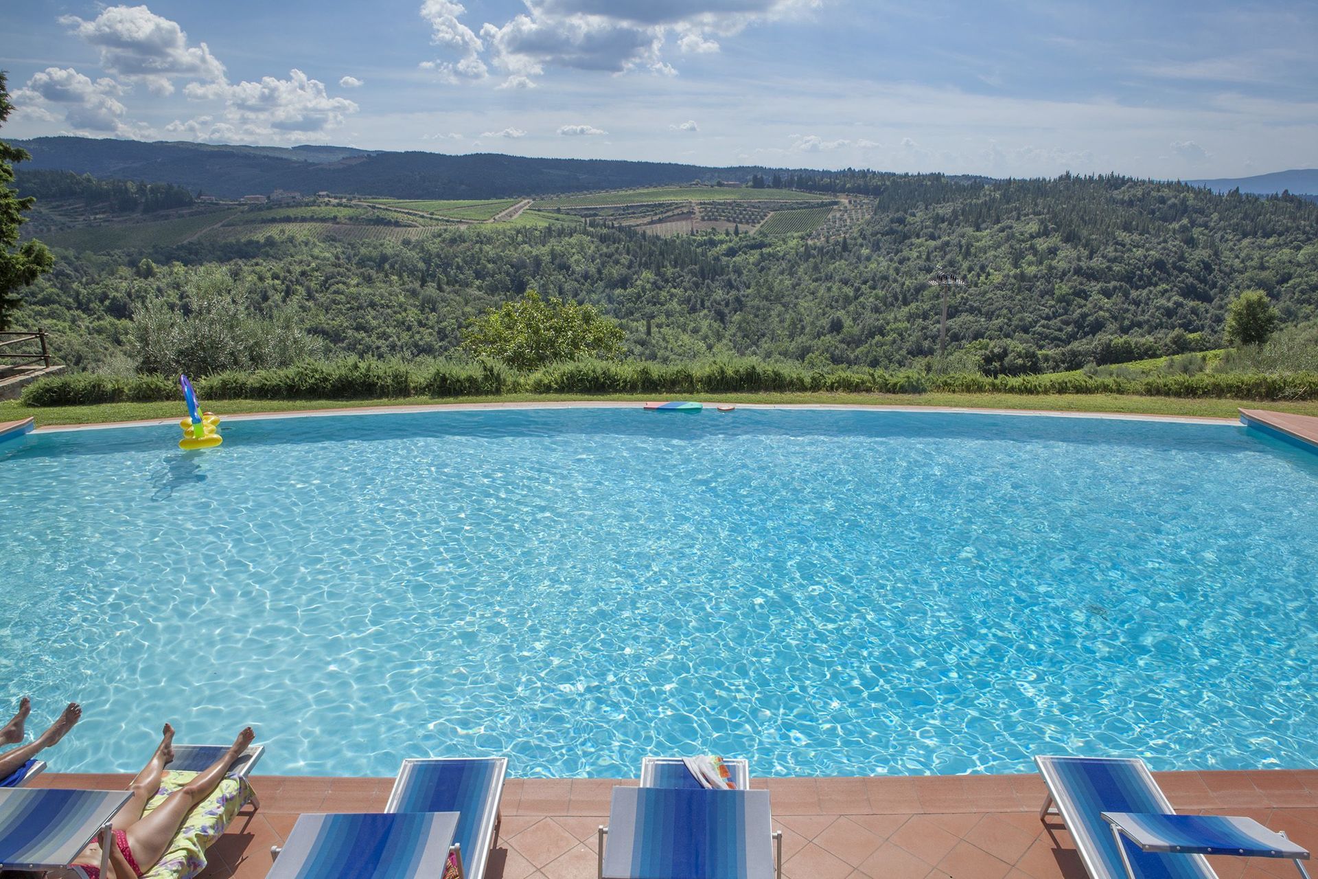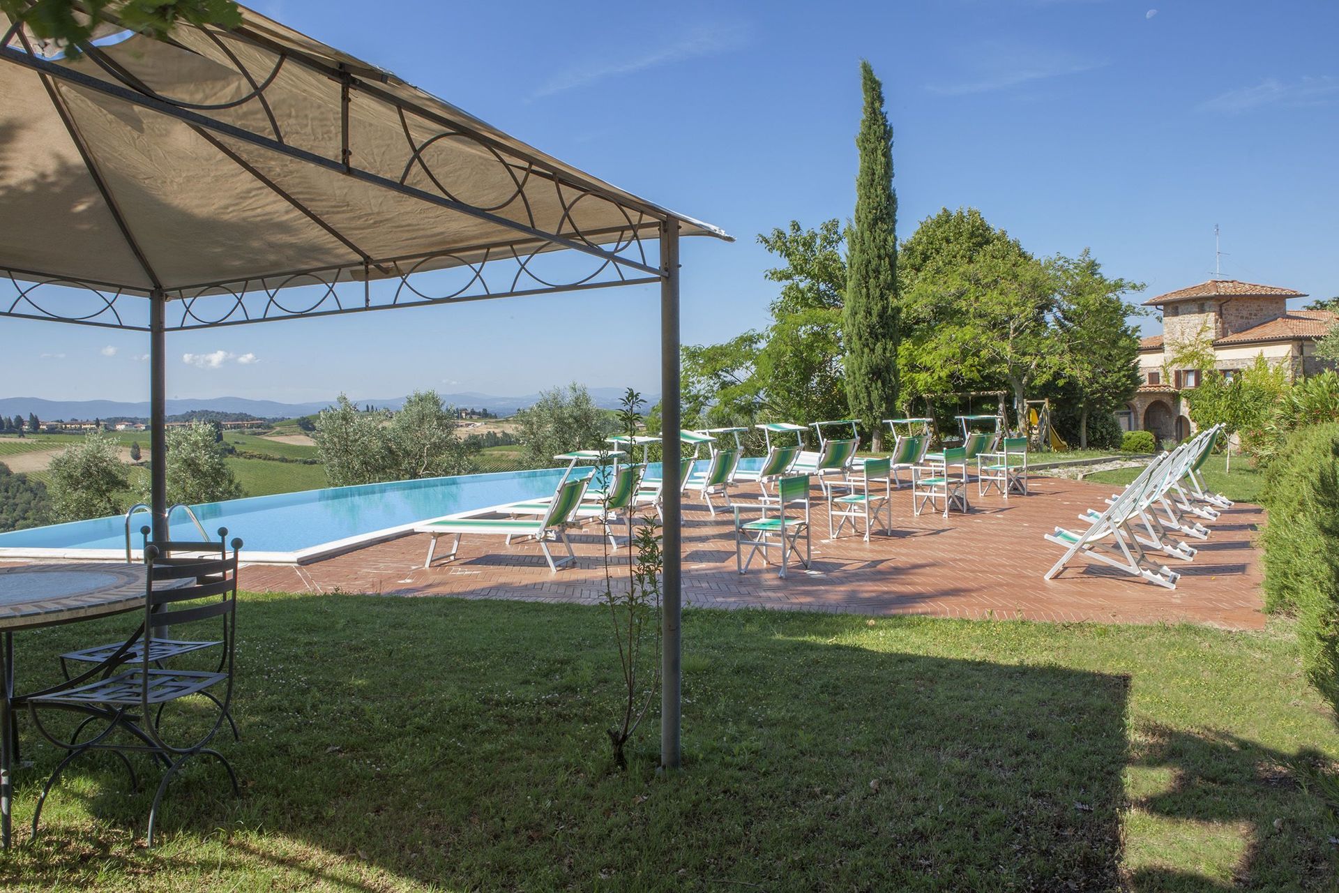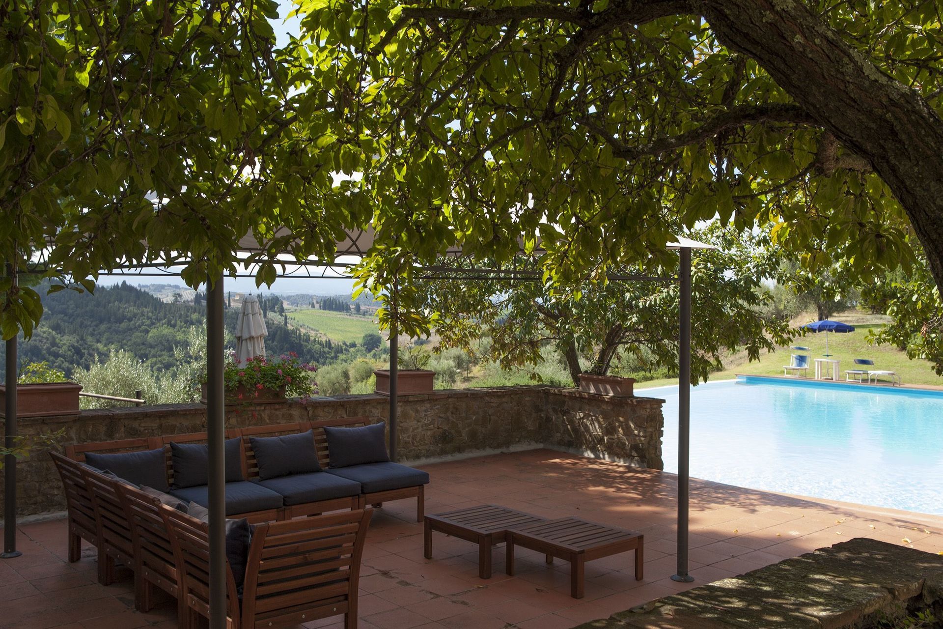 One particularly scenic and lovely winery in which one can do all of the above and more besides is the beautiful Castello di Monsanto. While the Castello di Monsanto actually dates back to the middle of the 18th century and wine production in the area goes back centuries, it is in the last fifty years that the estate has become home to the Bianchi family and their beloved wines. Located in Barberino Val d'Elsa, in western Chianti Classico, a bit northwest of Castellina in Chianti, this incredible historic castle was where founder Aldo Bianchi, a native of San Gimignano who had first left Tuscany before the Second World War to seek fortune elsewhere in the North of Italy, found himself at a wedding. Taking in the amazing views across at his hometown of San Gimignano, over the hills of the Chianti Fiorentino region, and right to Monte Amiata and the Apuan Alps from the terrace of the castle, Aldo fell in love. Within a few months, he owned the Castello di Monsanto.