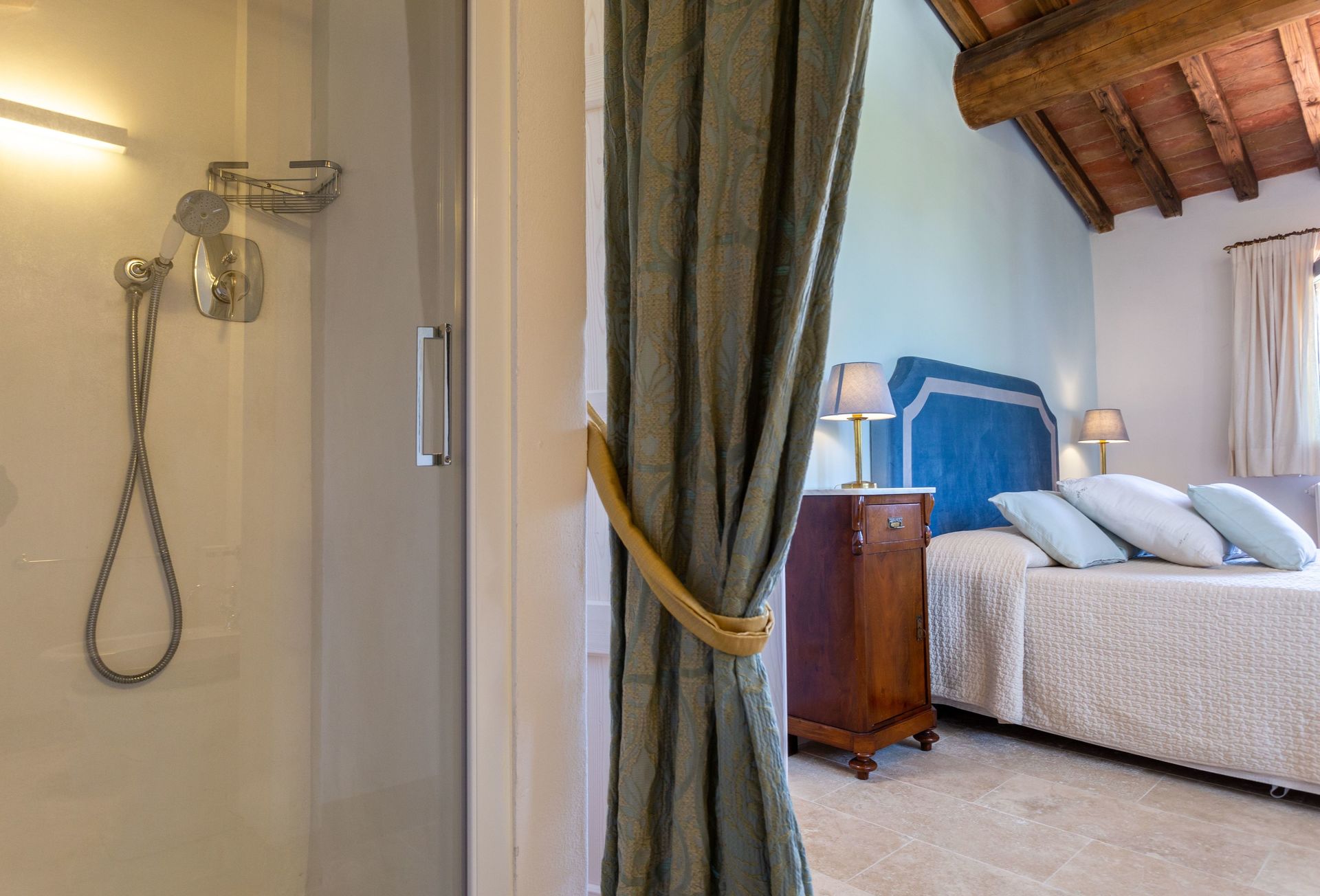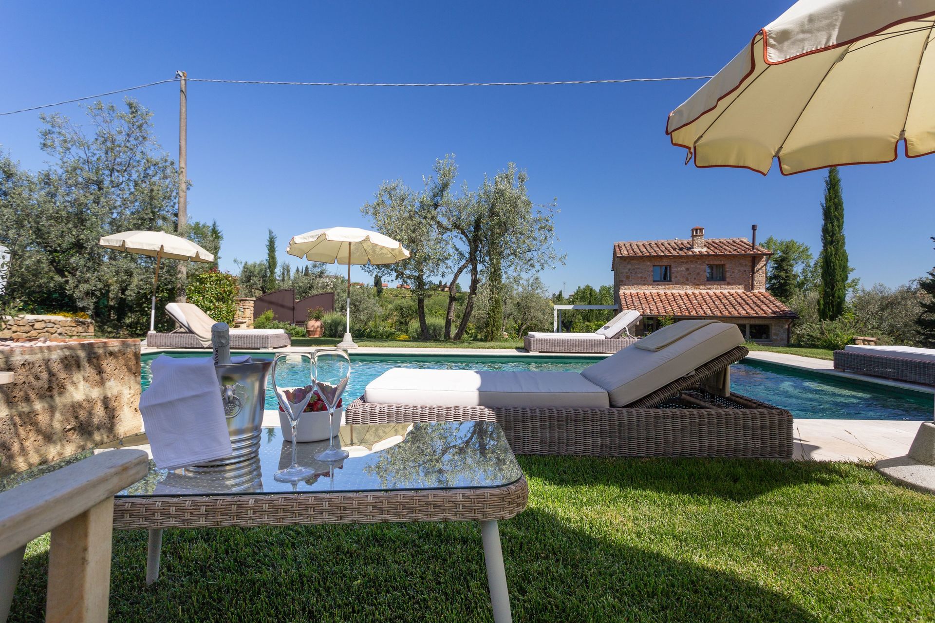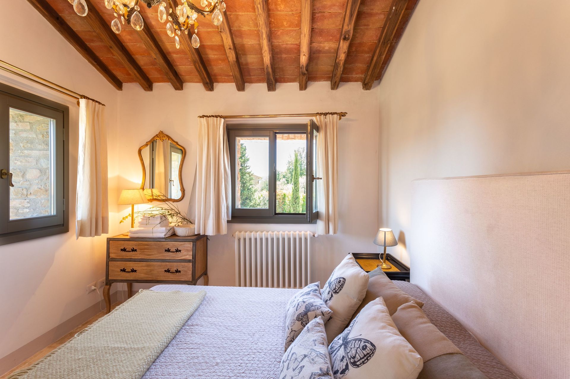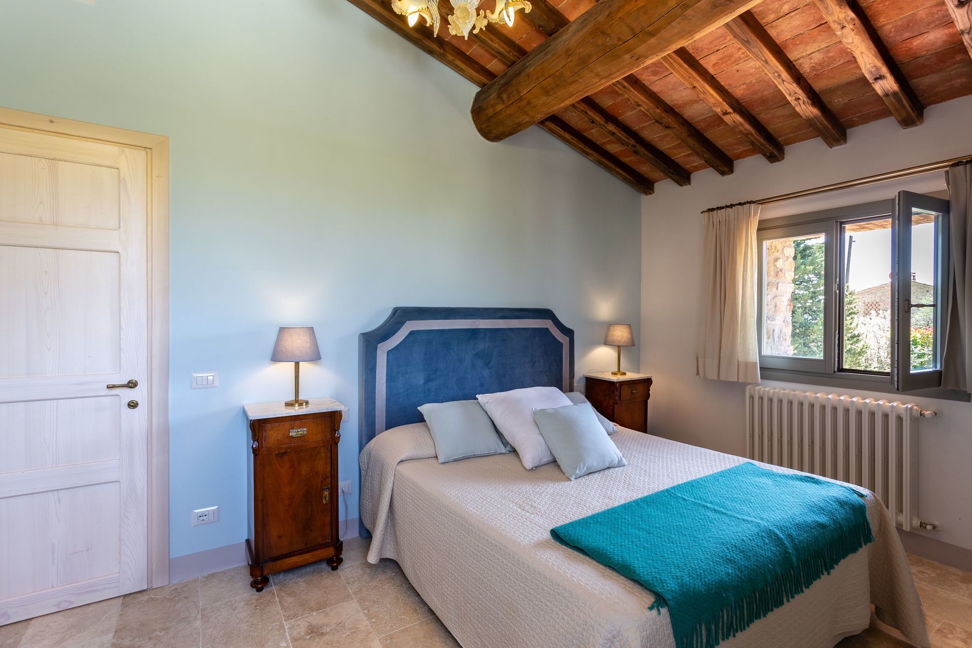 Located on a lovely hillside, overlooking the verdant valleys and rolling green hills for which Tuscany is so well-known, and just 11km from the famous spa town of Gambassi Terme, Villa Belvedere is a gorgeous stone villa in Tuscany. The name Belvedere refers directly to the breath-taking views offered by the villa and, in addition to these views, the property also boasts a beautiful garden that spreads out over 1000m2 and features a private pool and ample outdoor furnishings. With interiors that are full of character and four bedrooms with three bathrooms, sleeping up to eight guests in total, this gem is a perfect oasis where you can enjoy privacy, peace, tranquillity, and untainted natural surroundings.
