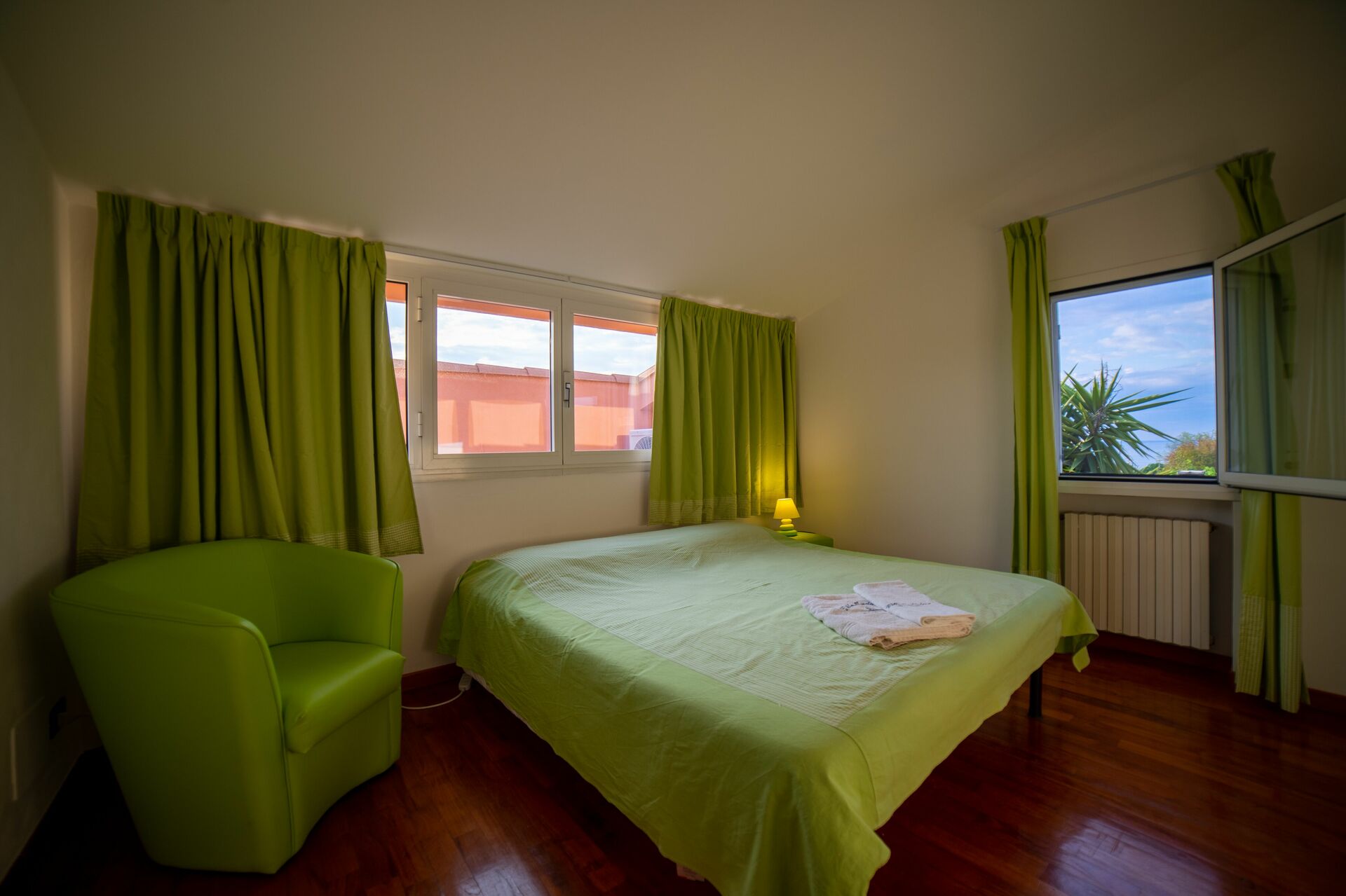 At the upper levels of the villa, the "ROYAL APARTMENT" is on two floors, measuring approximately 200 sqm. It also has a splendid panoramic sea-view terrace and a large outdoor space with lawn, an eating area with a barbecue and an oven.