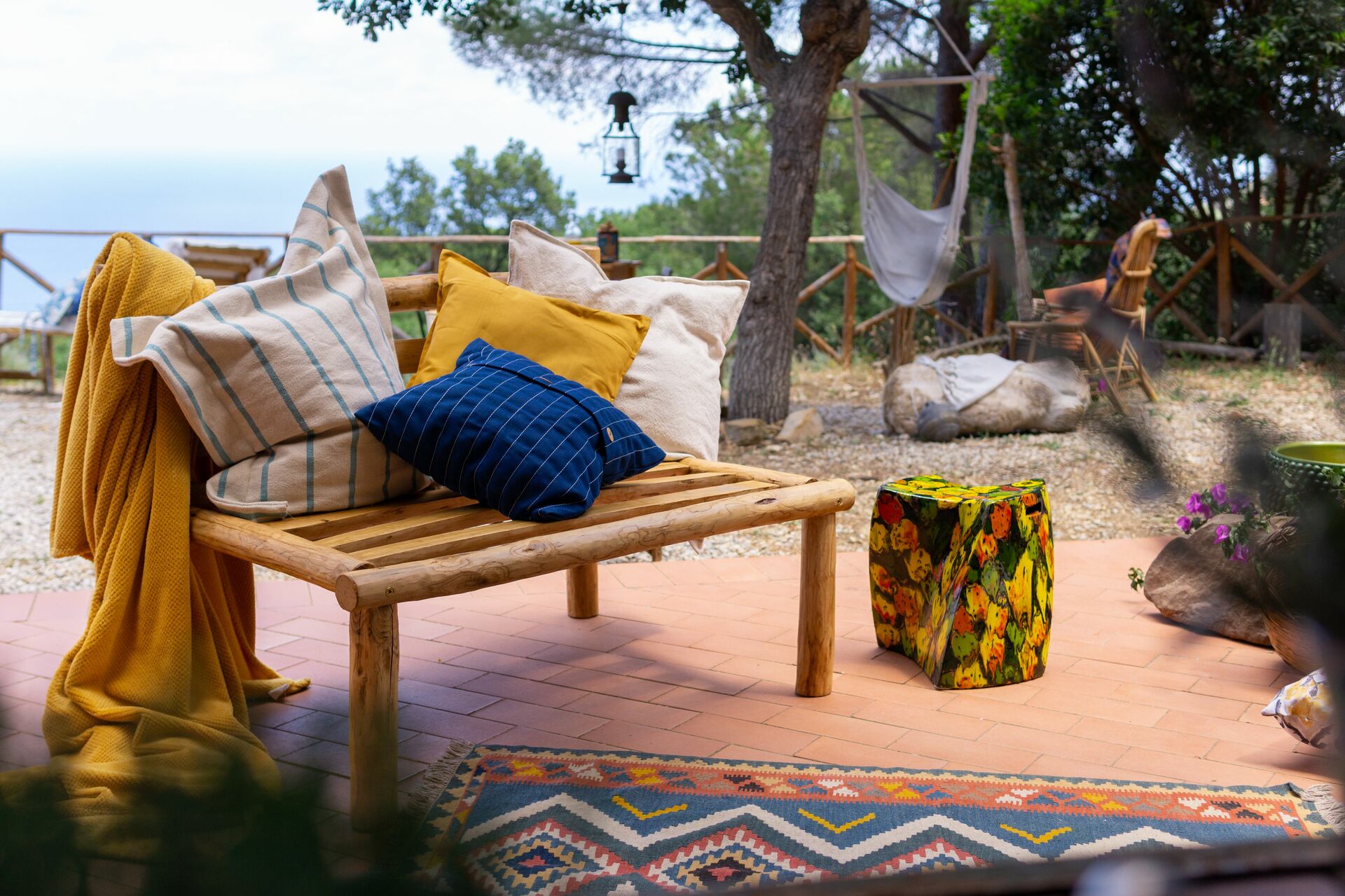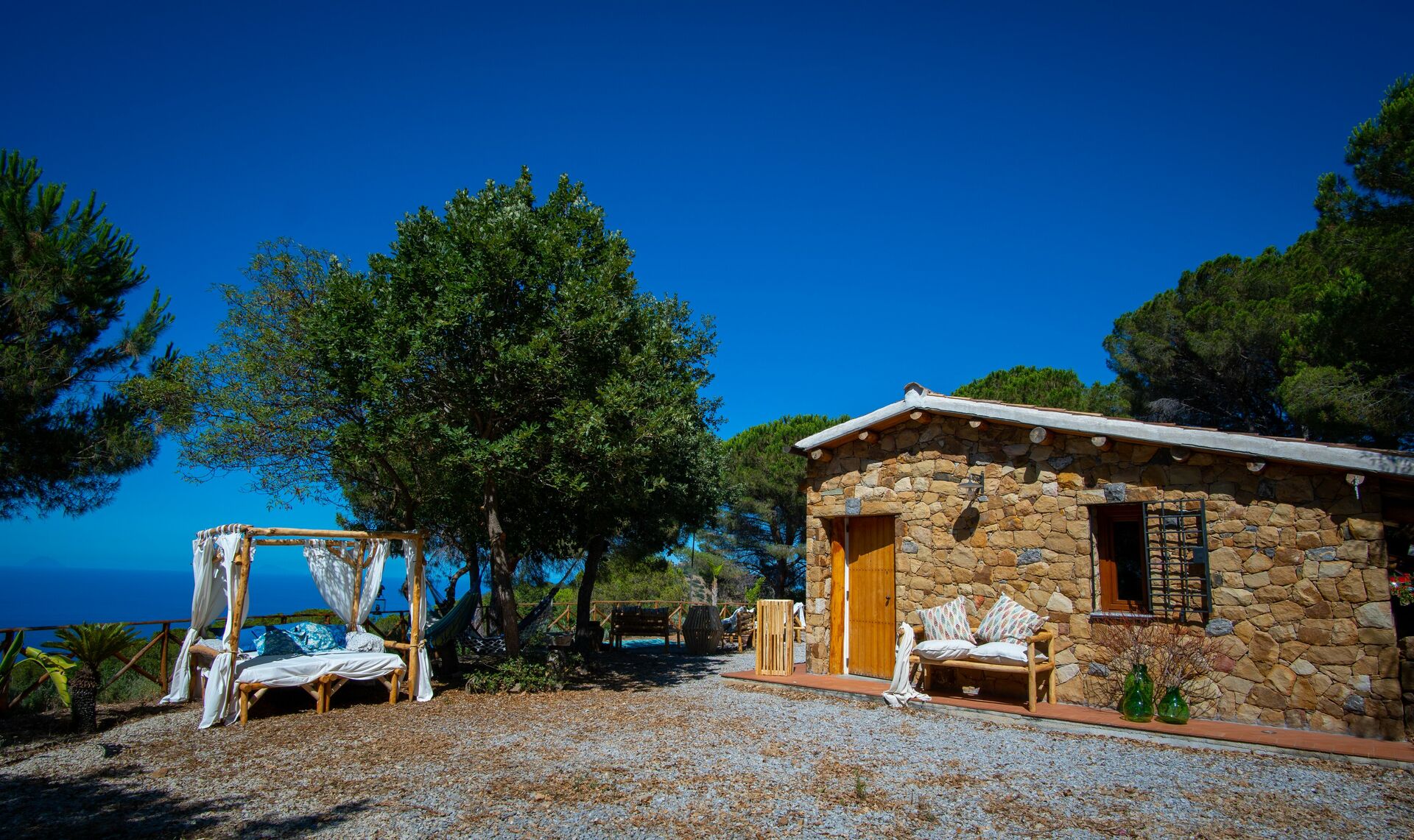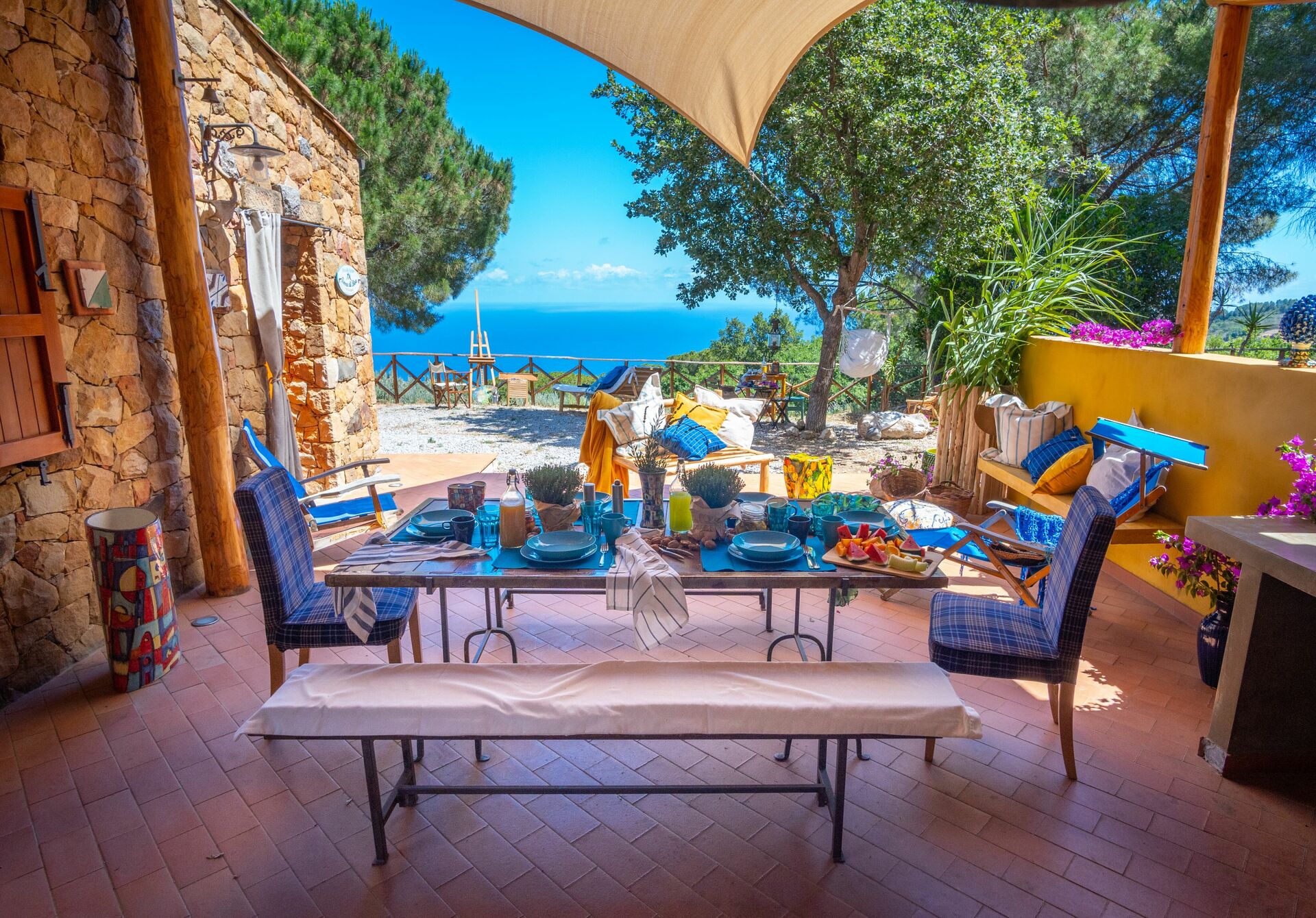 After arriving at Terre Di Bea Cottage By The Sea Cefalu' you’ll find a nice clean well-maintained property with views of the sea and the mountains ideal for a splendid vacation in Sicily. After a busy day of shopping, spend some time with friends and family poolside enjoying a glass of wine - a perfect way to unwind at the end the day. Also available outdoors are a patio, barbecue grill and playground. Sharing a meal with friends and family is a big part of the Italian culture. Take advantage of the well-equipped kitchen to prepare meals using local produce while on your vacation. The kitchen includes coffee machine, toaster, stove and refrigerator, as well as, plenty of tableware and cutlery for up to five people. Dine 'al fresco' like a real Italian, the fully furnished veranda is the perfect setting to enjoy food, family and the beautiful Italian weather.