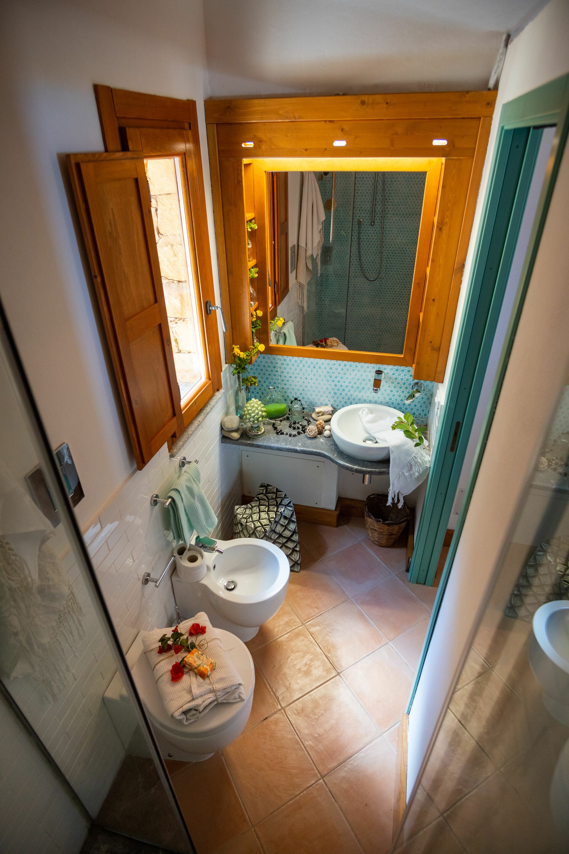 Bedroom + Ensuite Bathroom 1 (35 m2): double bed, WIFI internet, television, ceiling fan, basin, toilet, bidet, shower.