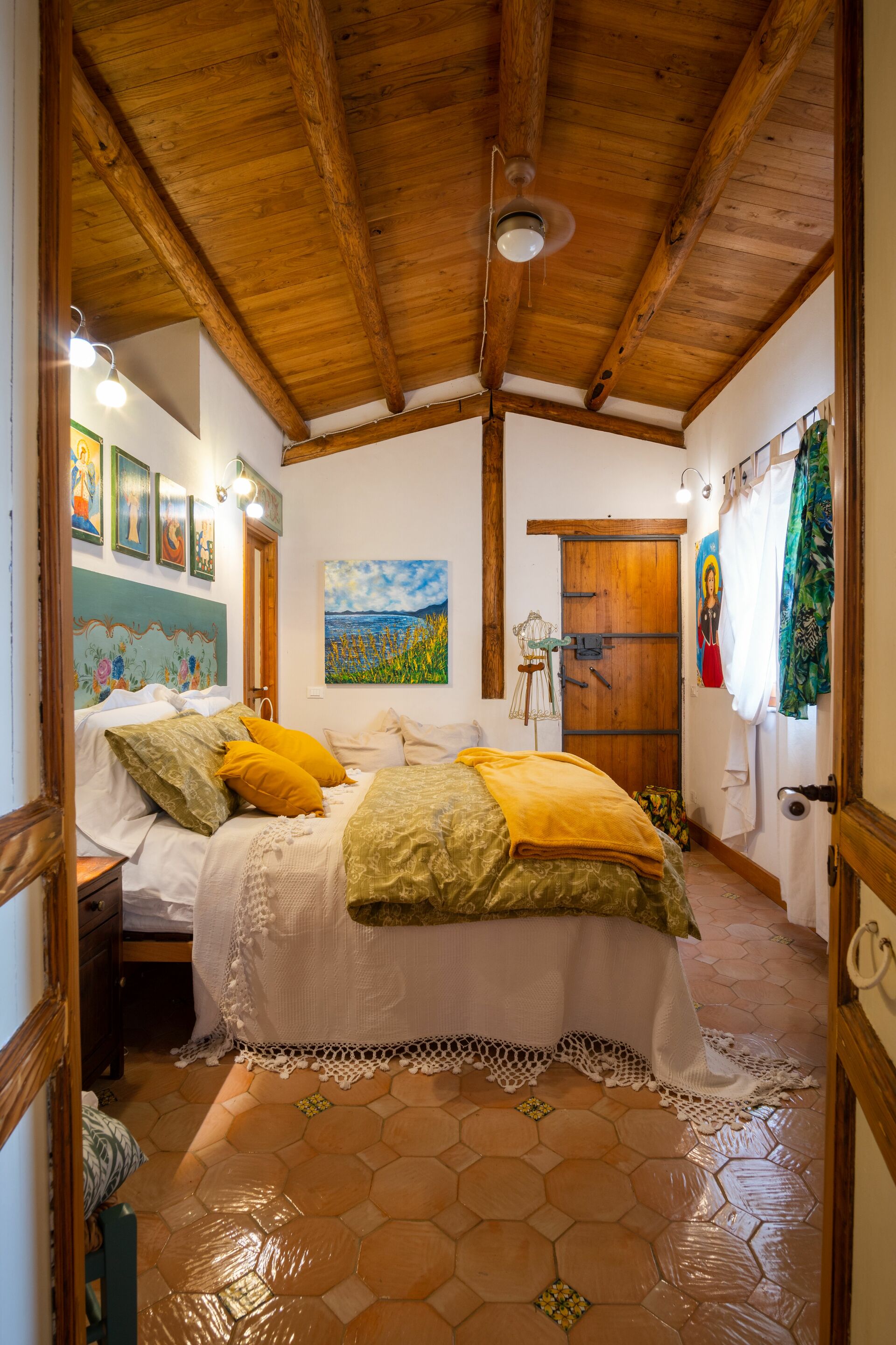 Bedroom + Ensuite Bathroom 2 (27 m2): double bed, WIFI internet, ceiling fan, sofa, basin, toilet, bidet, shower.