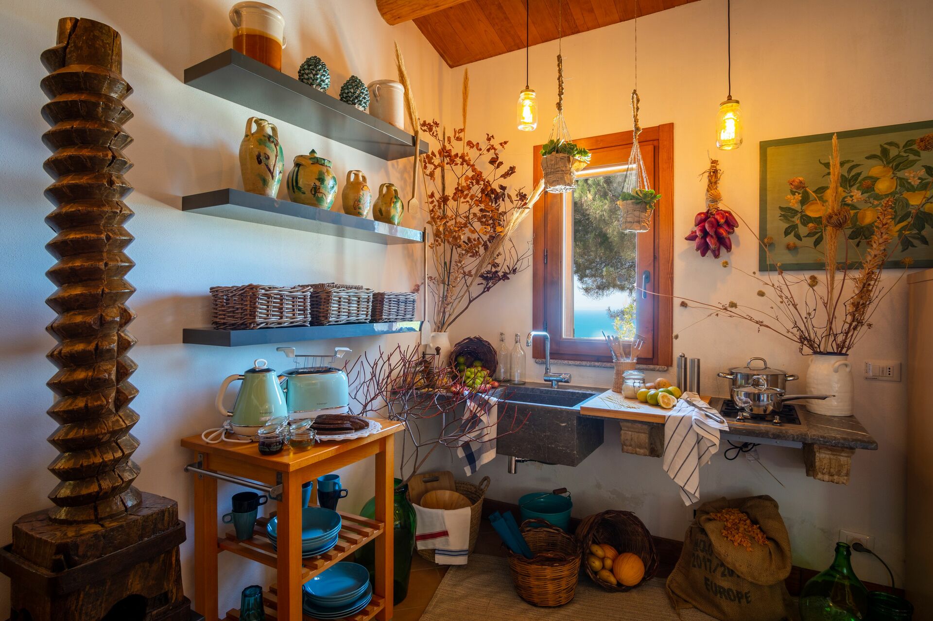 Our Welcome Package with a Pre stocked refrigerator with mineral water and Sicilian wines and beers , fruit juices , iced tea soft drinks, yogurt, snacks , local cured meats and cheeses platter , fresh seasonal fruits , breakfast items for the morning, Lavazza espresso machine with pods and a fully equipped kitchen .