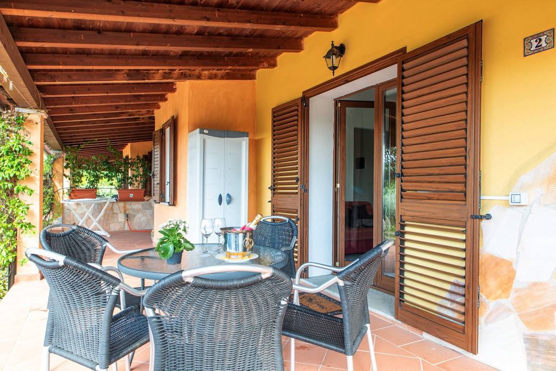 Terrace (100 m2): al fresco dining, dining table (people: 5), WIFI internet, barbecue, terrace furniture, sunbed.