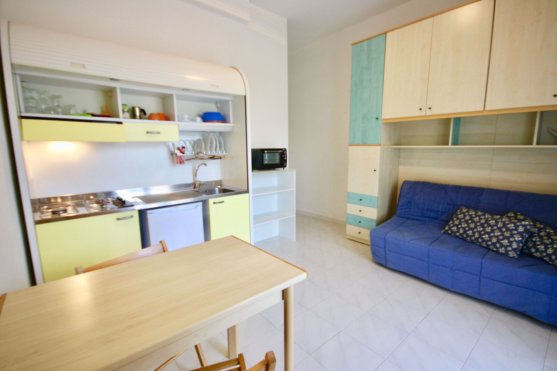 Open space (20 m2): sofa bed double, oven, fridge, stove top, dining table (people: 2), exit to the garden.