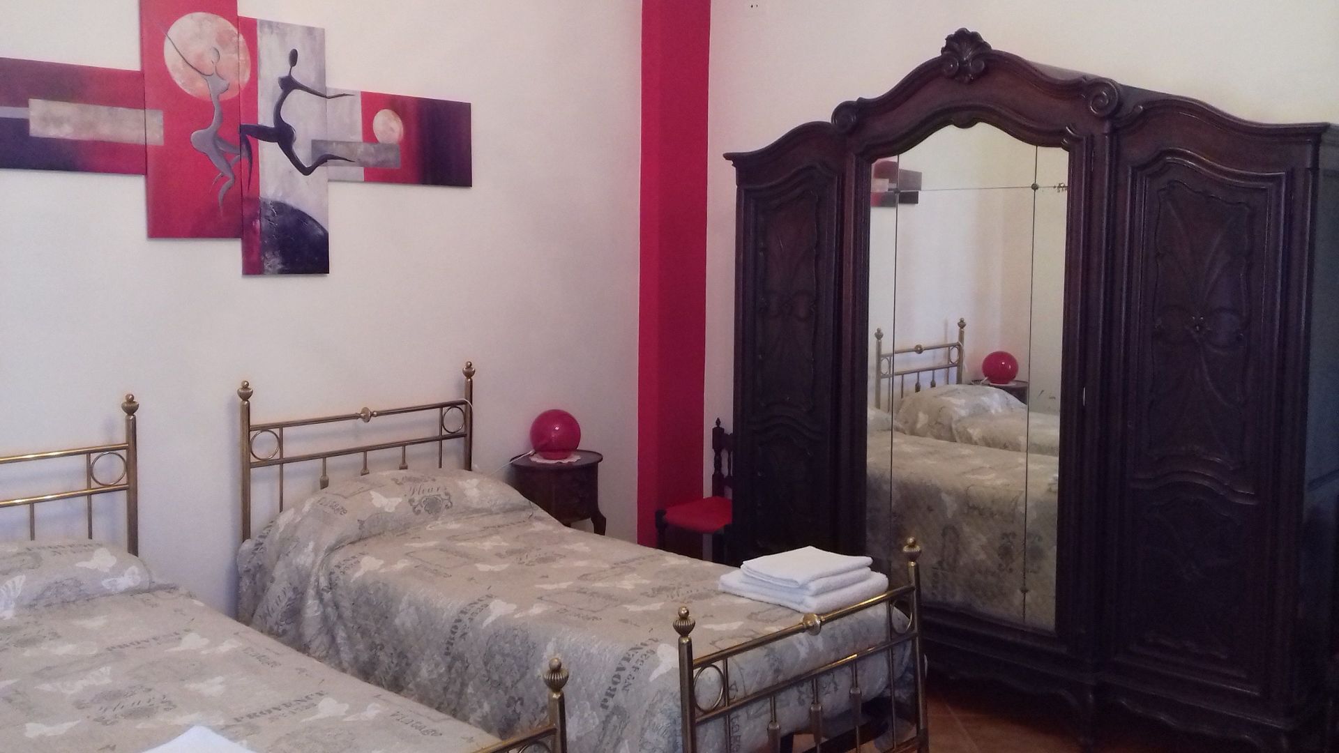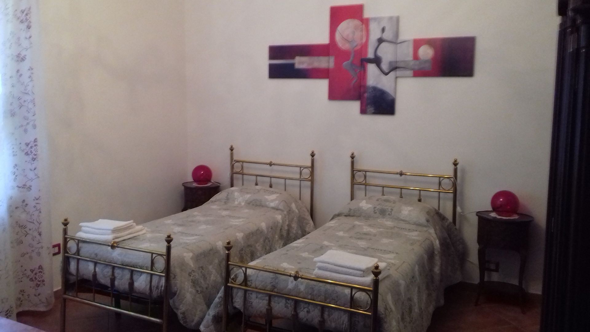 Bedroom 1: two single beds, WIFI internet, portable fan, exit to the balcony.