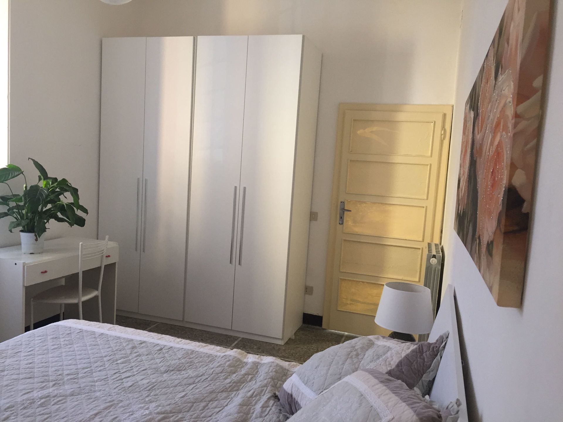 Pisa Modern Apartment 2 has a spacious double bedroom, a room with a bed and a studio with television and possibility to have a very comfortable bed. The kitchen is pretty small but it overlooks the terrace where there is a table for 4/6 people, its chairs and the parasol. Great and pleasant, flowered relaxation corner.