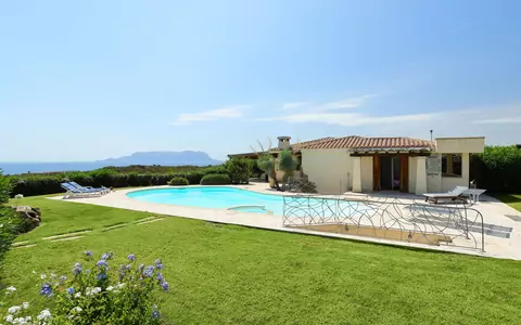 Comfortable terraced house "Iris" is a vacation rental situated in the hamlet of Ville del golfo, just 7.5 km from the center of Golfo Aranci. It boasts a sunny position on a slope in a traffic-calmed area, only 2 km from the sea. This property offers a private garden with flowers and trees, as well as a seasonal swimming pool (30 m2, available from April 1st to October 31st). Enjoy the convenience of an outdoor shower, motor access to the house, and parking for up to 2 cars (suitable for small to medium-sized vehicles).