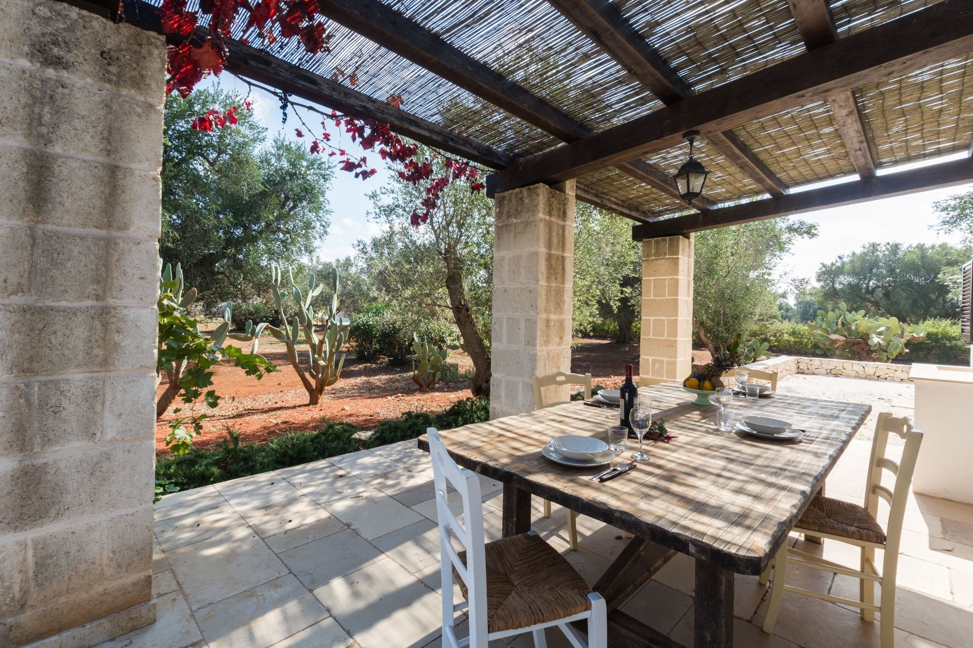 Spread over four hectares in the peaceful countryside of the Itria Valley in Apulia, the grounds of Villa Orama Relais are planted with ancient olive trees, brightly-coloured blooms, and cacti. Glimpses of the crystal clear waters of the sea can be seen out of various windows in the villa through gaps in the dense greenery of the trees but there is also a terrace that affords both clearer views over the coast and towards the historic centre of Ostuni.