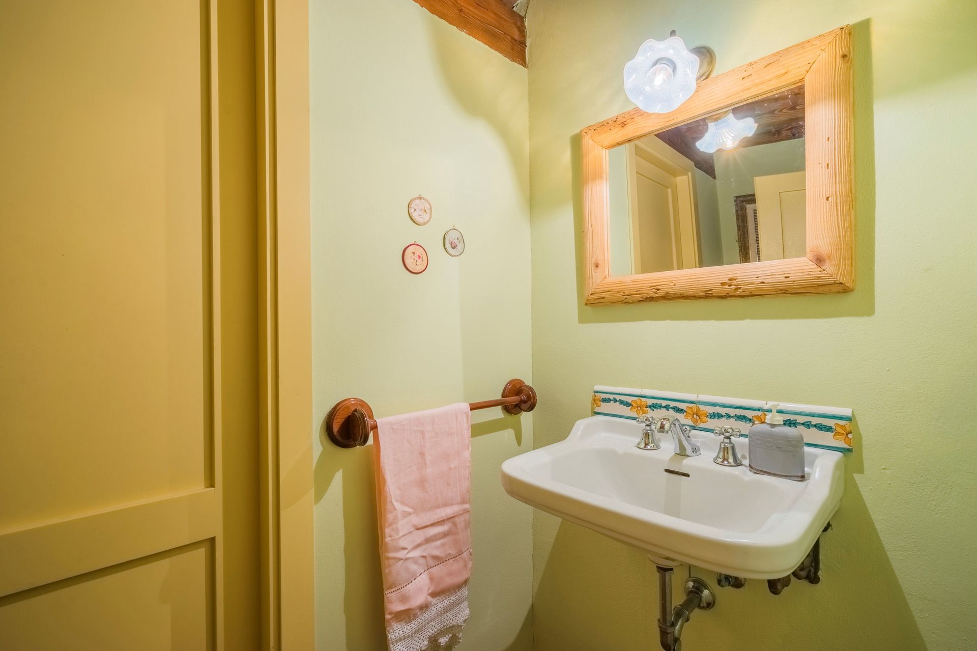 Bathroom: basin, toilet, shower.