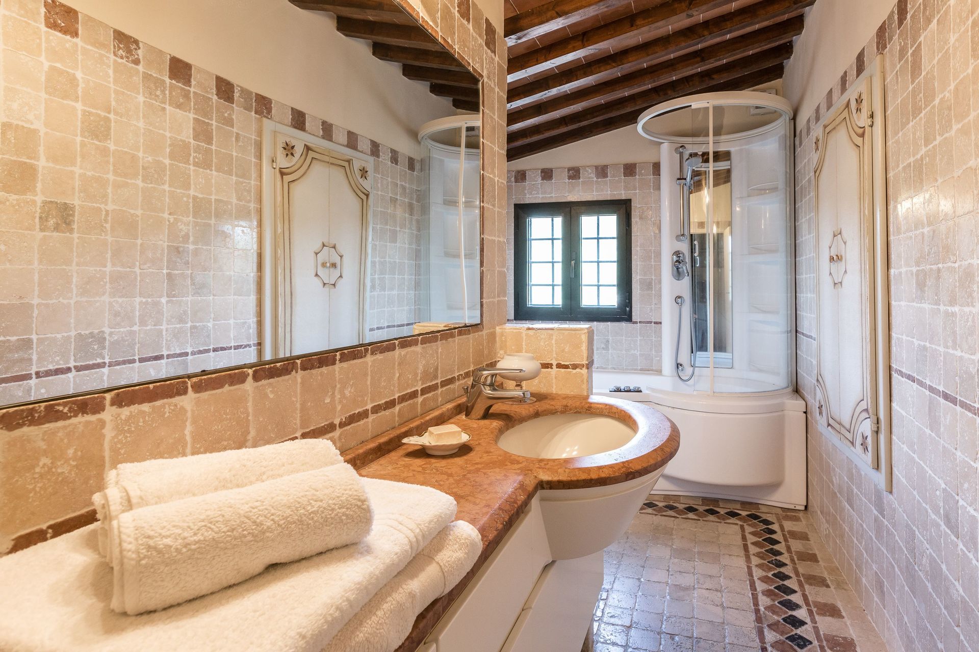 Villa Roncovisi is located 4 km (2 mi) from Monsummano Terme, Italy and only 37 km (23 mi) from Lucca in the tourist area "Lucca And Surroundings". Holiday home Villa Roncovisi is a nice stone building (500 sq m) that includes WiFi internet, private pool and air conditioning. The property can accommodate up to 19 guests comfortably in seven bedrooms with seven bathrooms.
