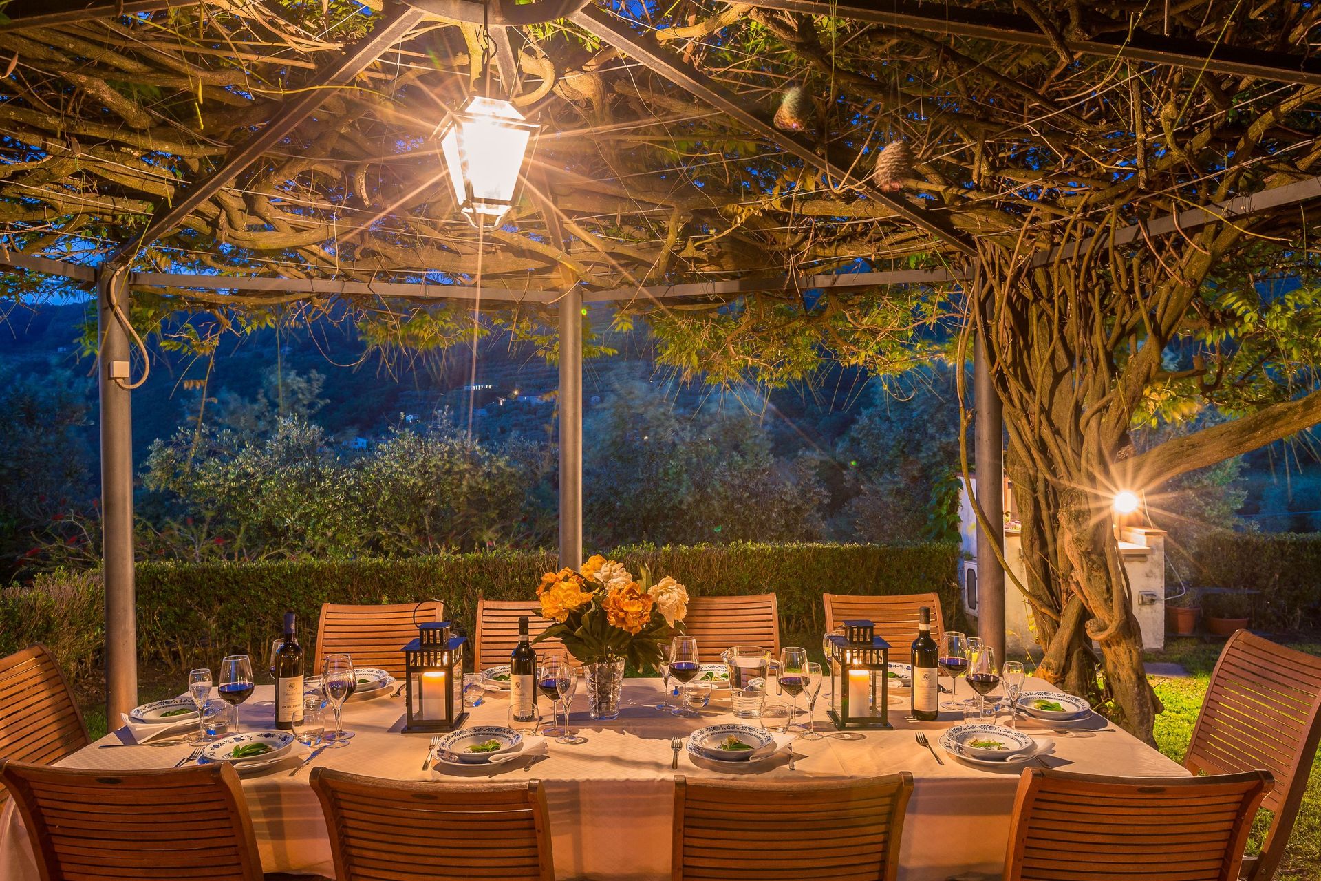 Dining room: dining table (people: 20), air conditioning, WIFI internet, fireplace, exit to the garden.