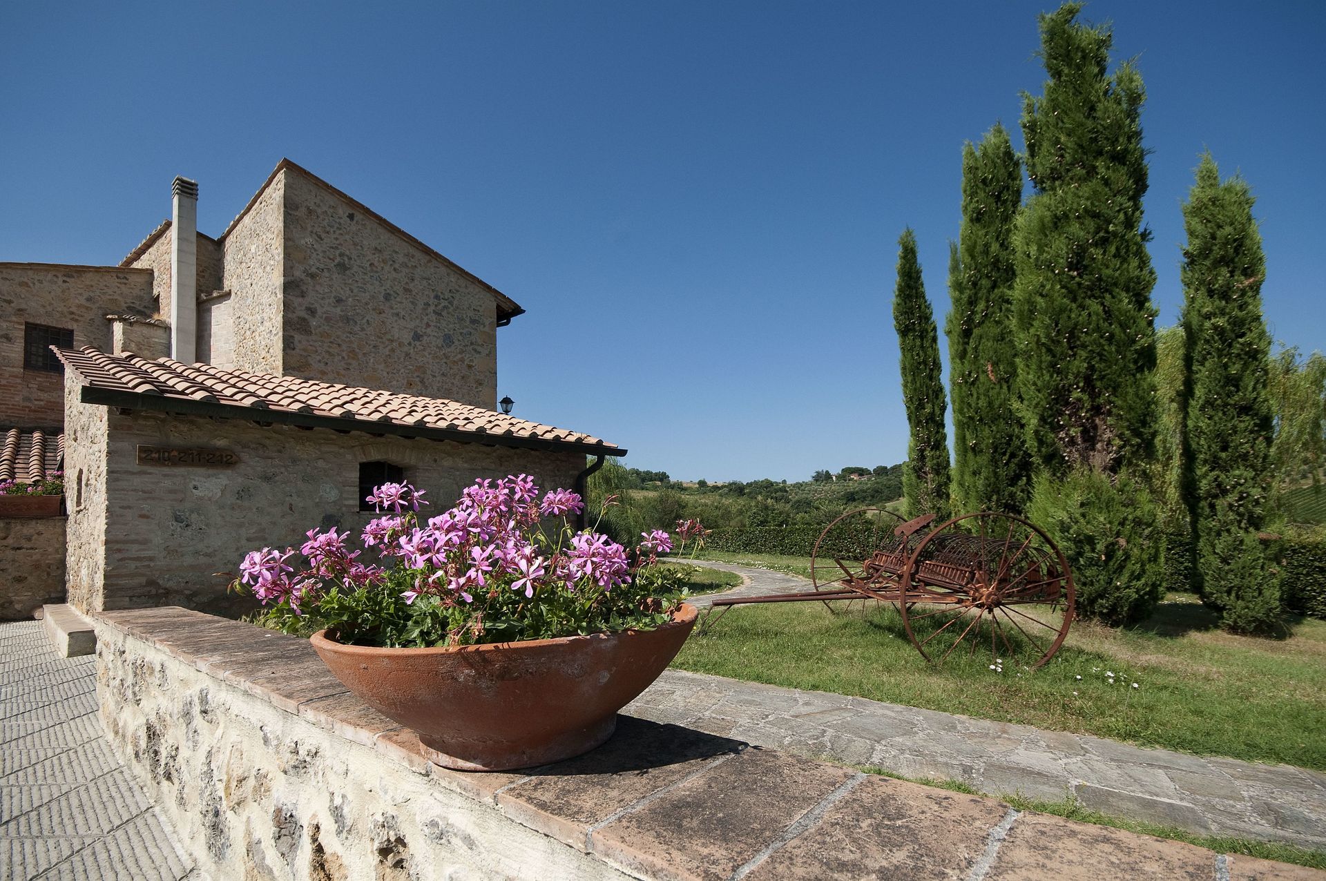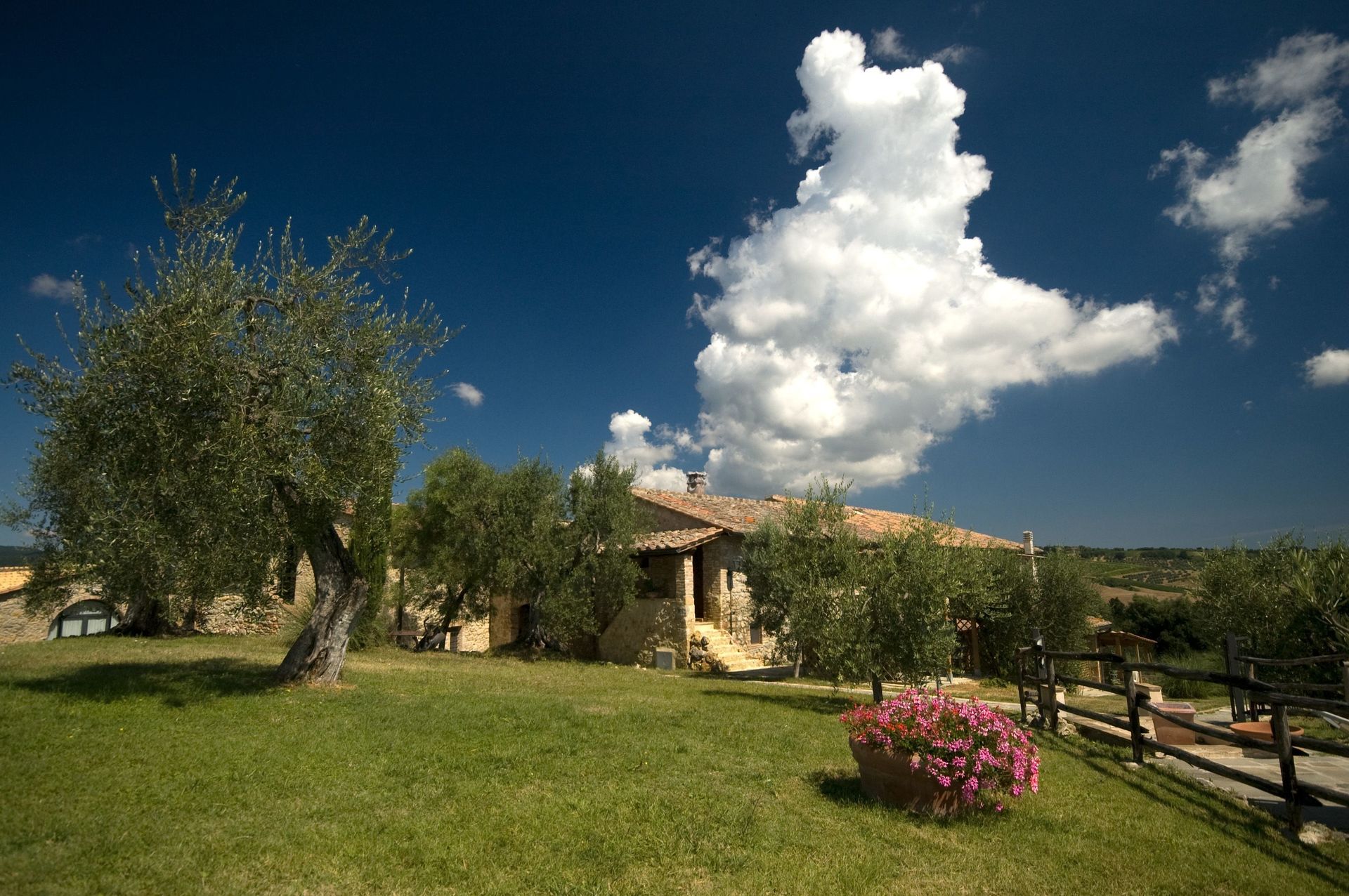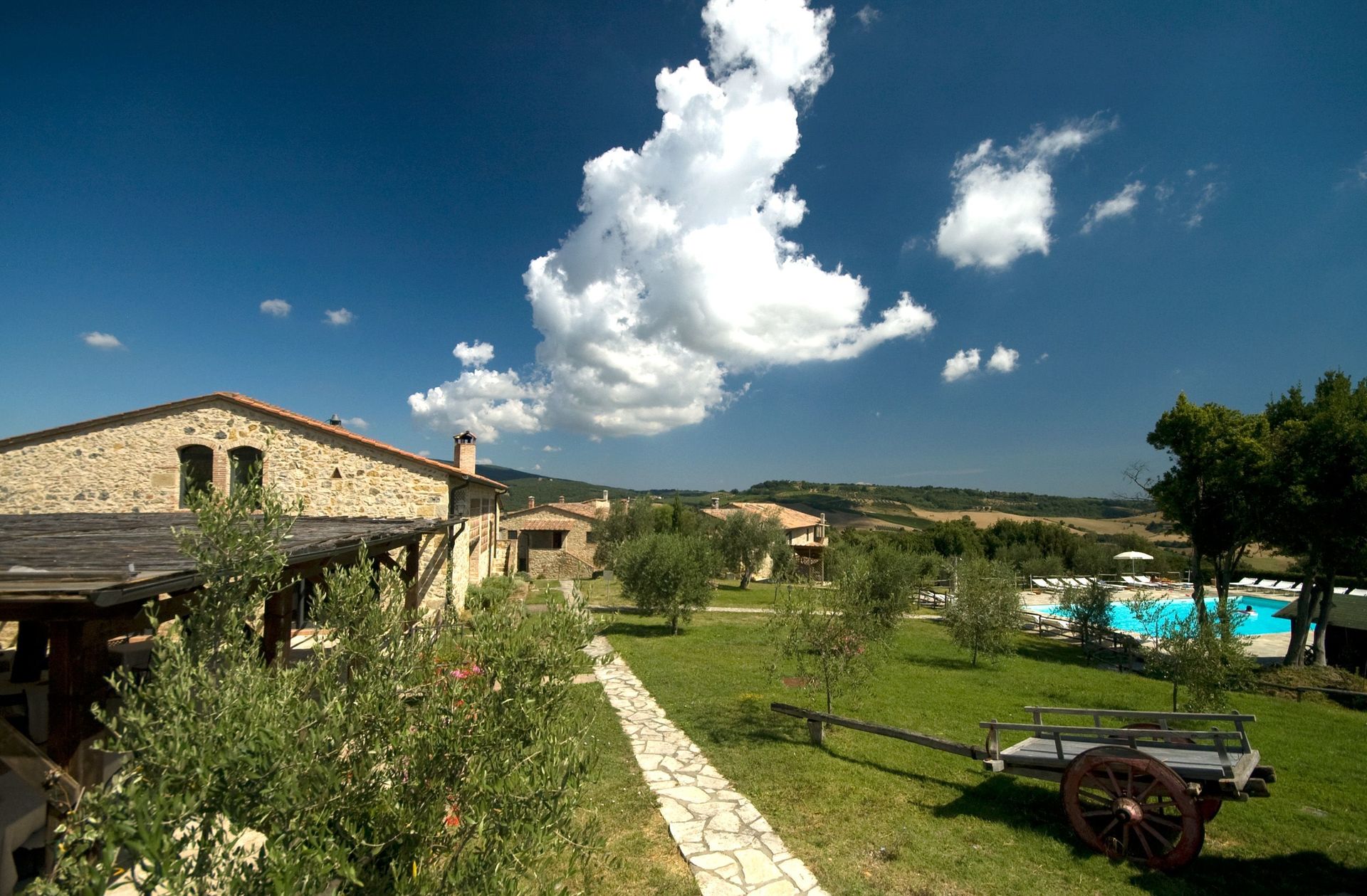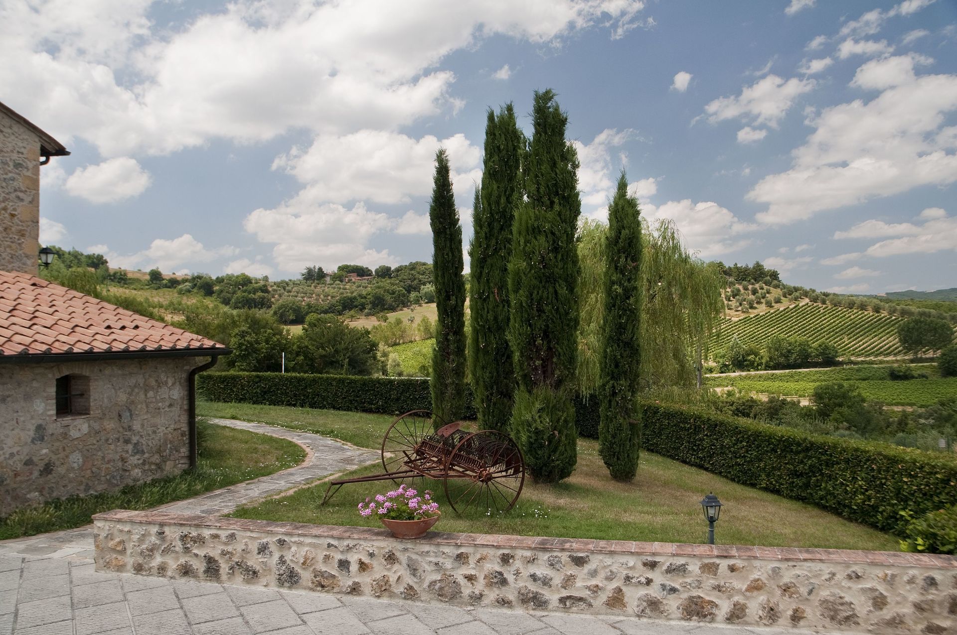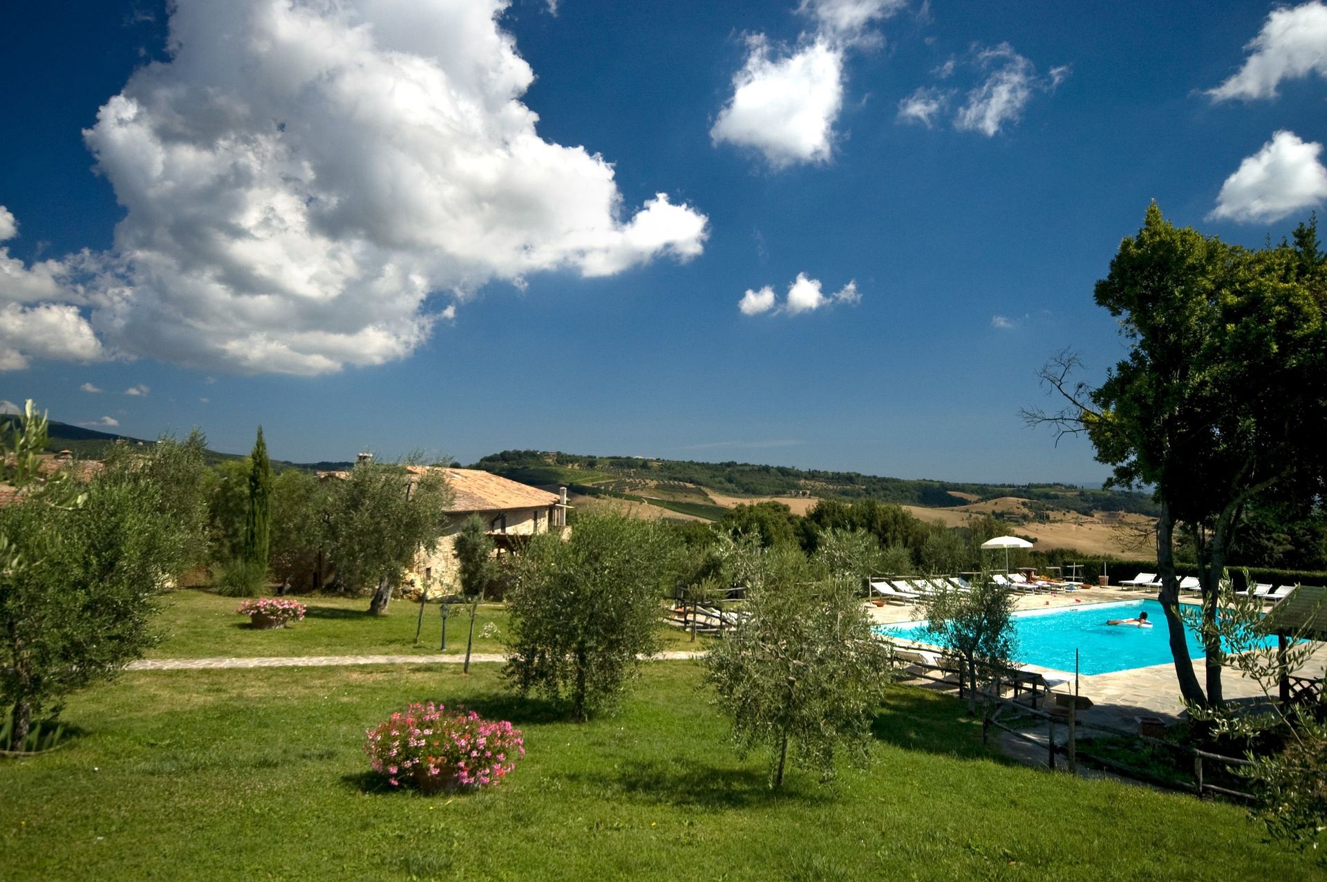 Charming Estate Decimo Mariano is a beautiful stone building that has a total of 15 private units that is conveniently located 13 km (8 mi) from San Gimignano, Italy in the tourist area "San Gimignano And Surroundings" and only 39 km (24 mi) from Siena. Charming Estate Decimo Mariano, among other amenities, includes also pool and air conditioning.