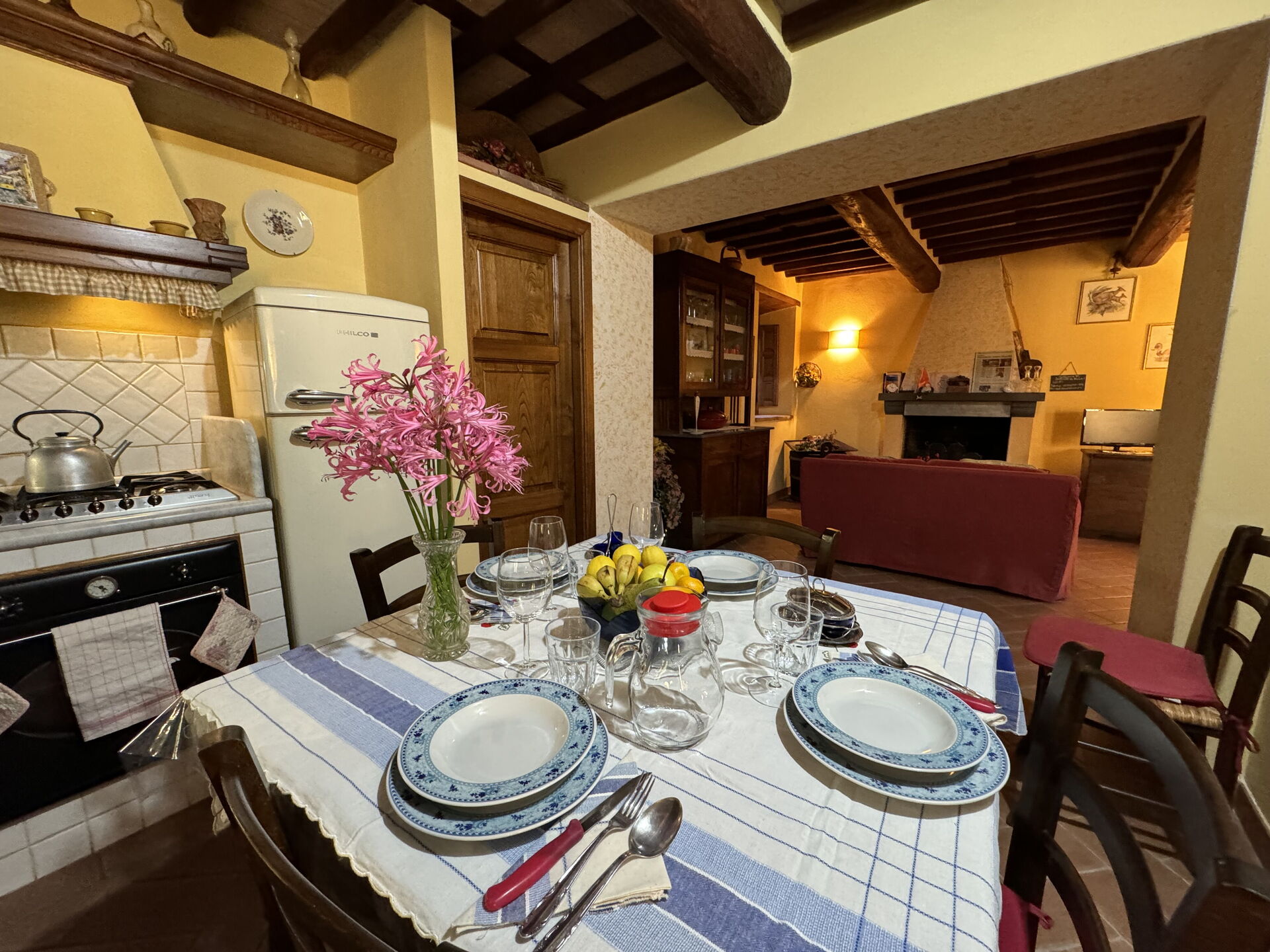 When you arrive you’ll find a nice clean well-maintained property with views of the hills perfect for a splendid vacation in Tuscany. After a busy day of visiting museums, spend some time with friends and family poolside enjoying a glass of wine - a perfect way to unwind at the end the day. Dining with friends and family is a huge part of the Tuscan culture. Take advantage of the kitchen to prepare meals using local produce while on your vacation. The kitchen includes coffee machine, stove and refrigerator, as well as, plenty of tableware and cutlery for up to six people. Dine 'al fresco' like a real Tuscan, the fully furnished garden is the perfect setting to enjoy food, family and the nice Tuscan weather.