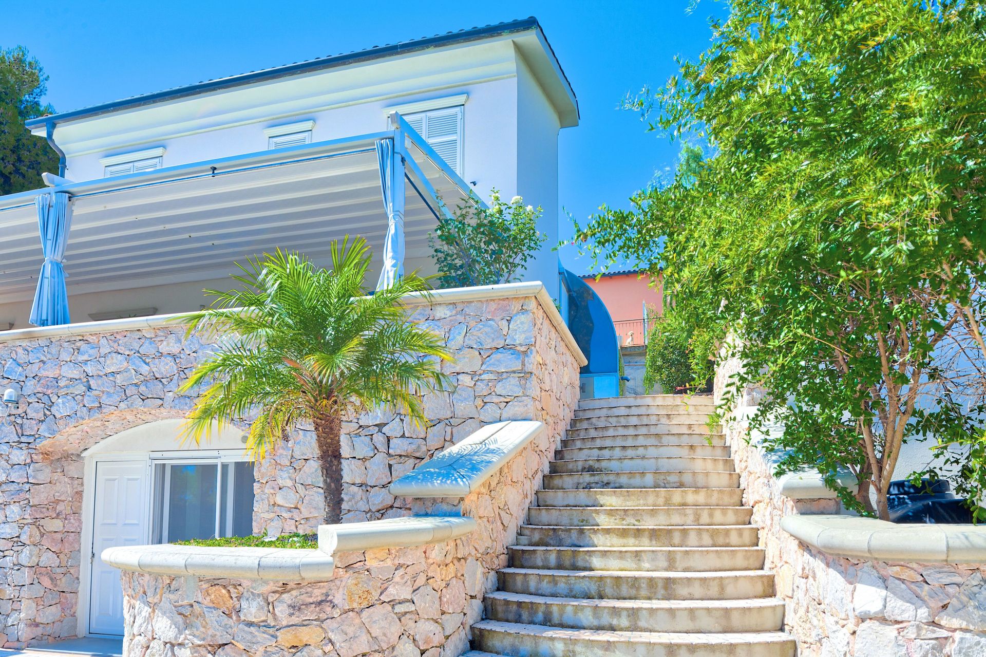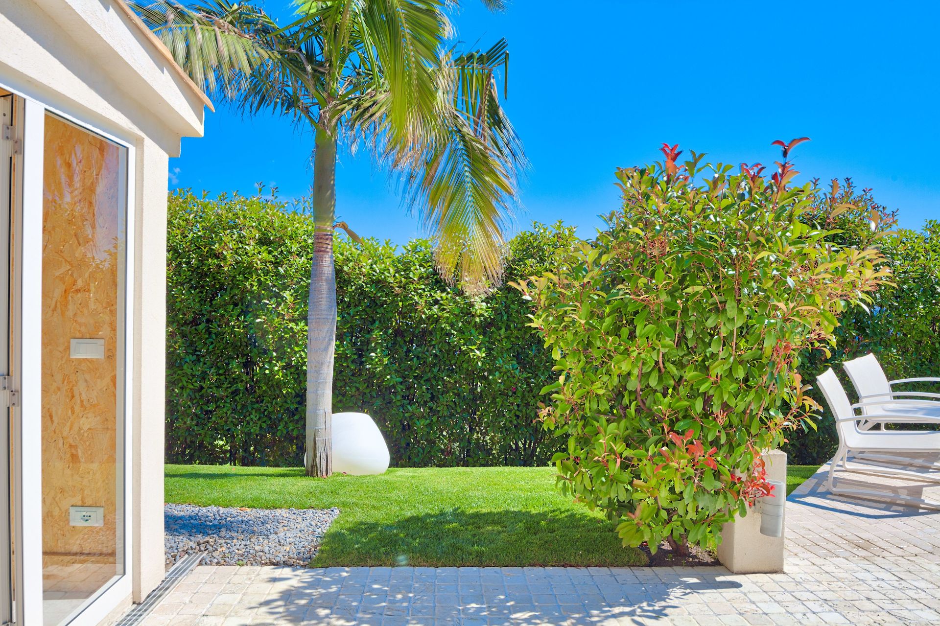 The neighboring house can be accessed from the garden.