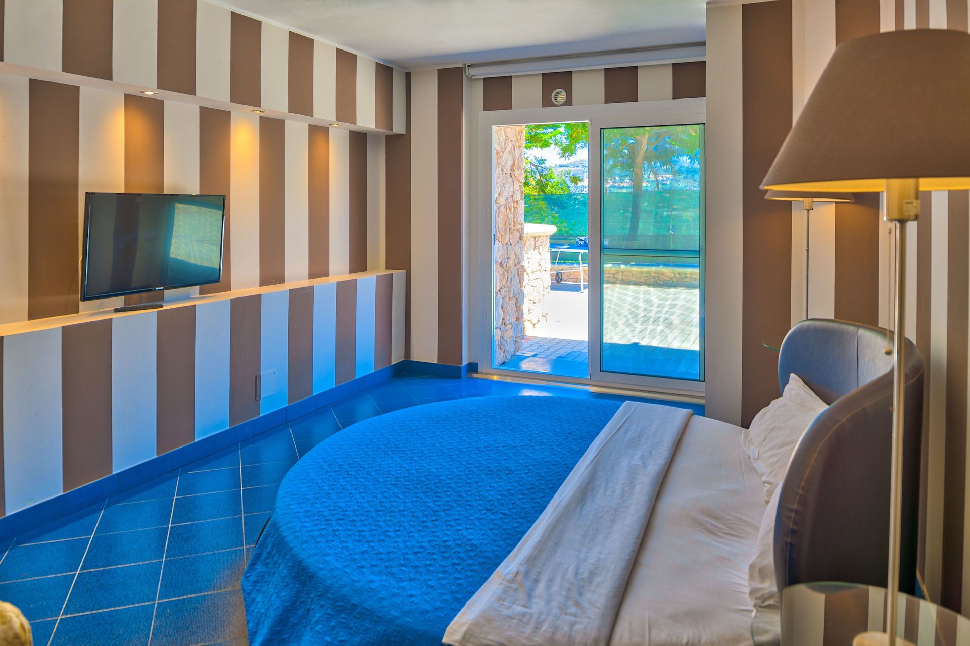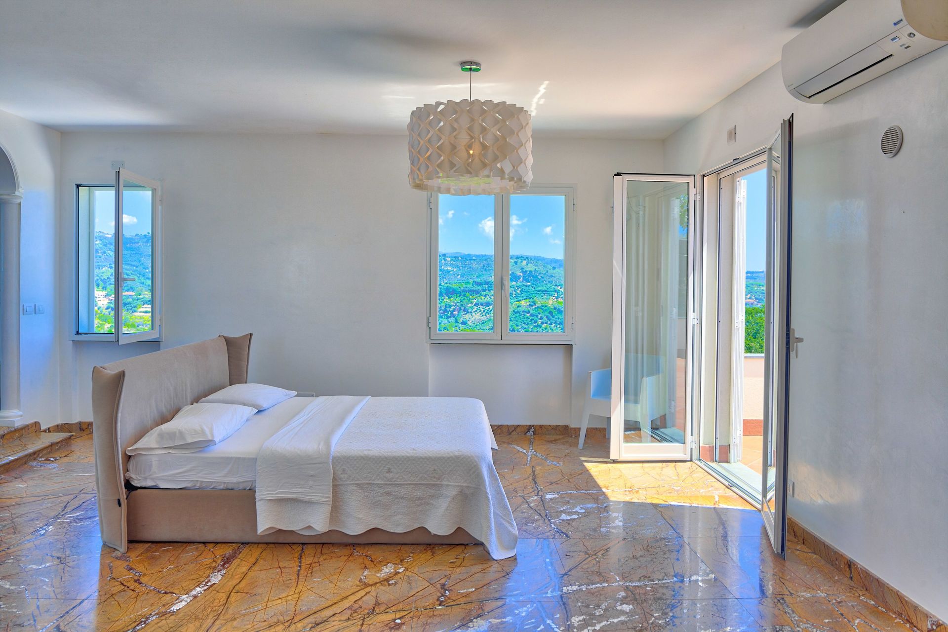 One bedroom with private ensuite bathroom: double bed, air conditioning, direct access to terrace with seaview, Satellite TV, walk-in closet. Private ensuite bathroom with bathtub, shower, double basin, toilet, bidet.