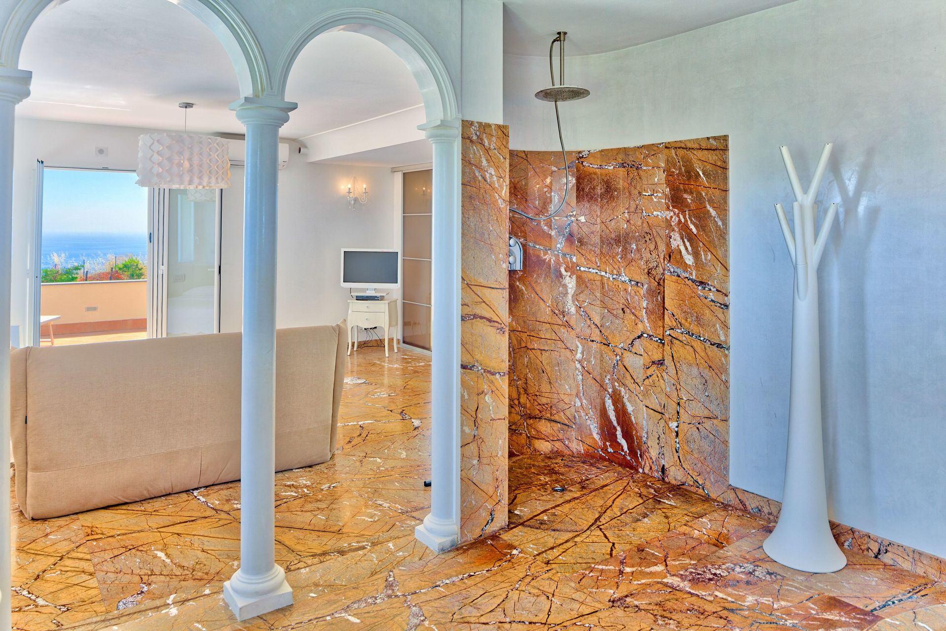 It's on a hill, in a quiet residential area between the villages of Costarainera, Lingueglietta and Cipressa, yet at less than 10 minutes by car from the beach.