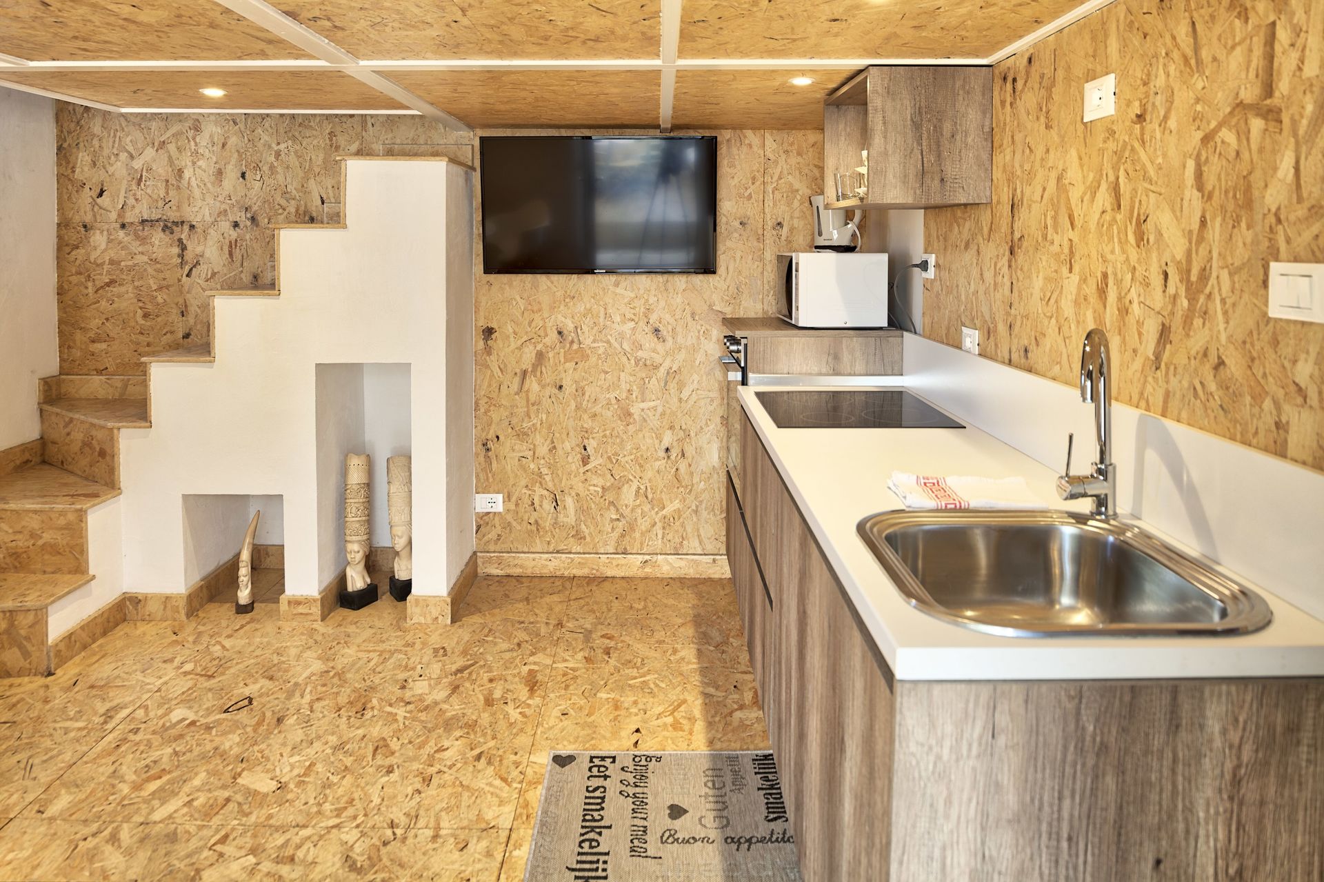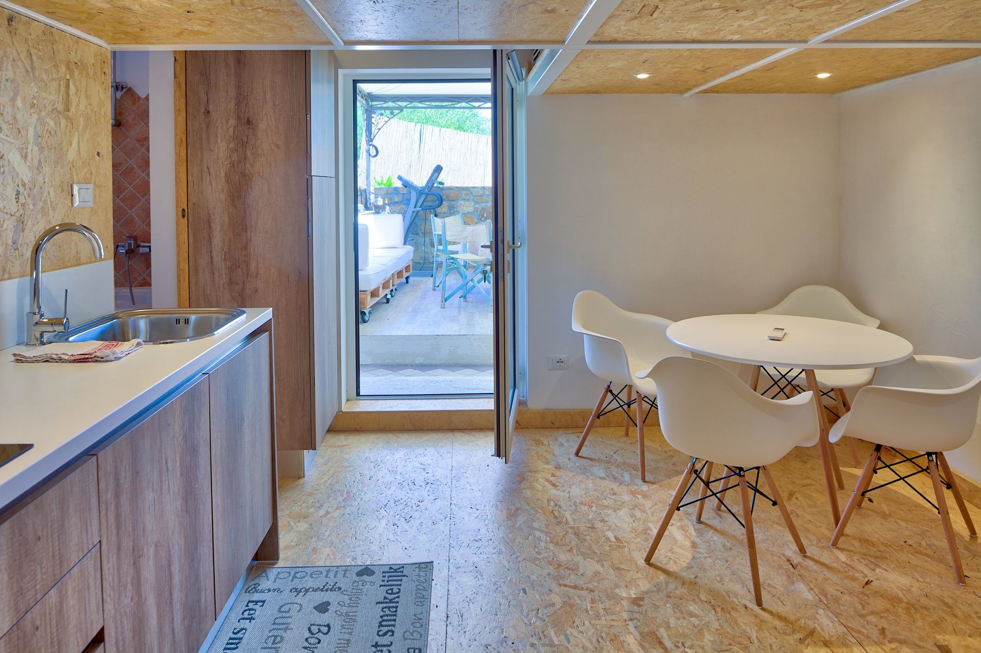 It's a small wooden annex, with equipped kitchen and bathroom on the ground floor.