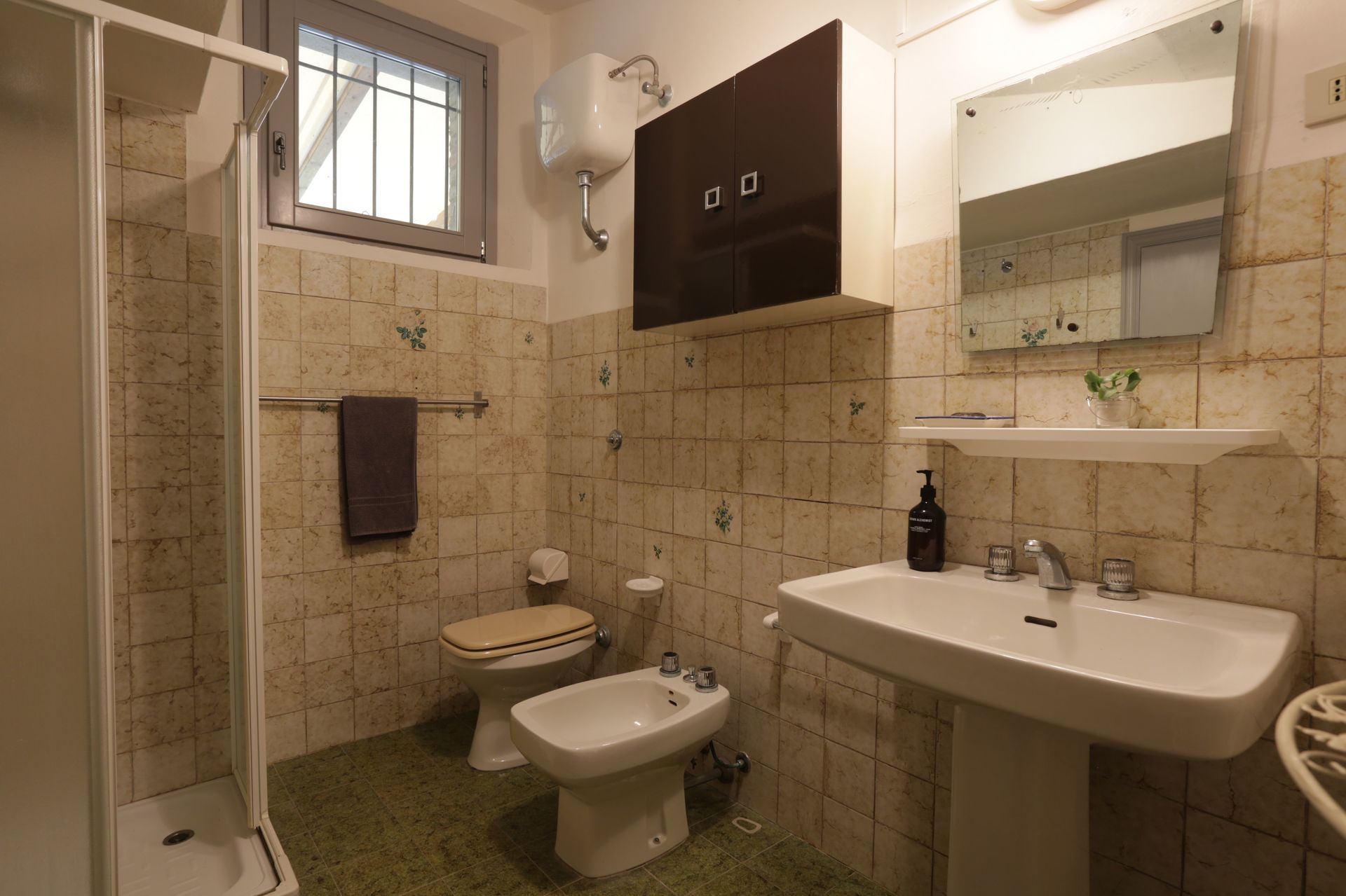 Bathroom 2: basin, toilet, bidet, shower.