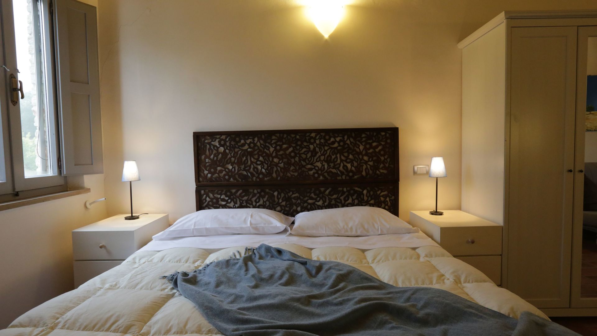 Bedroom + Ensuite Bathroom 1 (15 m2): double bed (length: 190m, width: 160m), WIFI internet, air conditioning, mosquito net, television, toilet, shower, hairdryer.