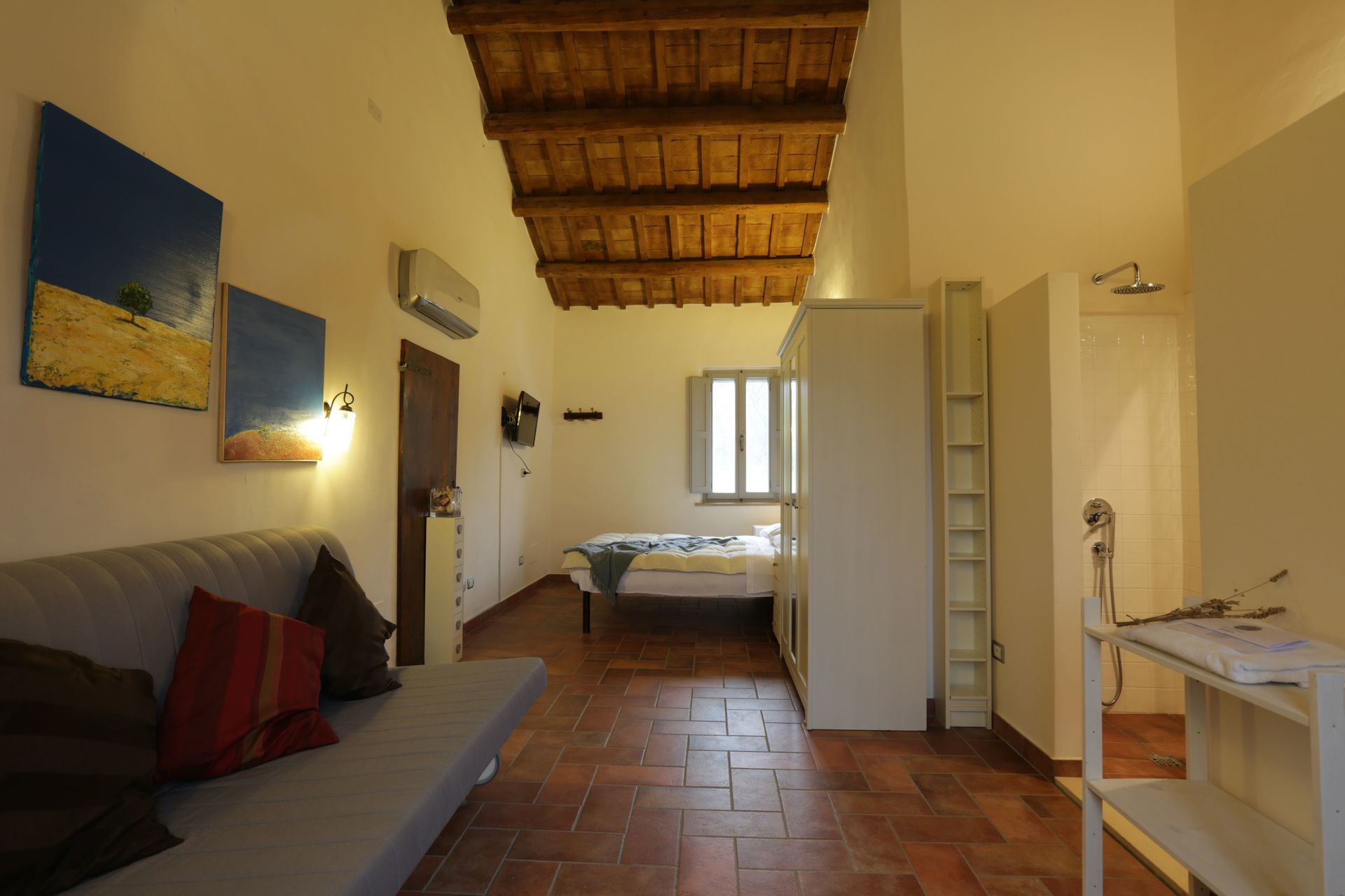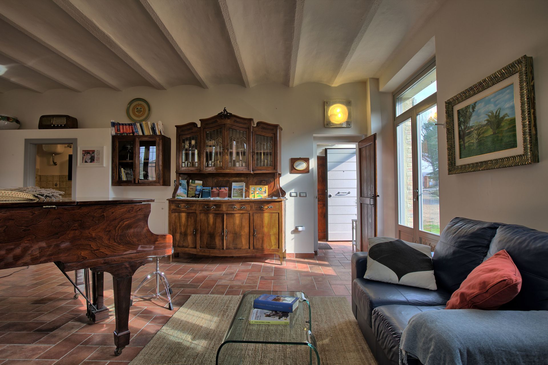 After arriving you’ll find a beautiful clean well-maintained property ideal for a relaxing vacation in The Marches. Regardless of how you spend your days - visiting museums, sightseeing, shopping or just driving in the countryside, when you arrive home you can unwind with your family and friends at the pool for a perfect ending to another day in The Marches. Also available outdoors are a patio and barbecue grill. If you enjoy cooking for family and friends there is a well-equipped kitchen including coffee machine, toaster, stove and refrigerator, as well as, plenty of tableware and cutlery for up to eight people. If you prefer to dine 'al fresco', there is a fully furnished veranda where you can enjoy the weather while dining outdoors.
