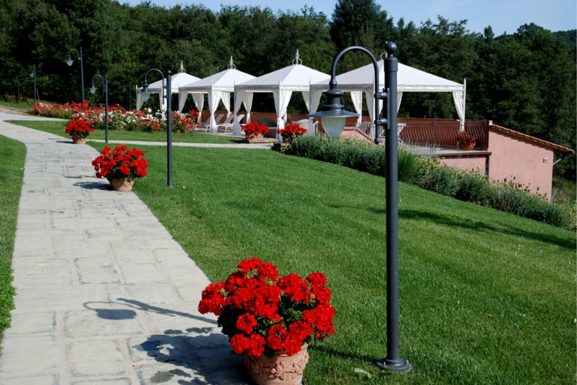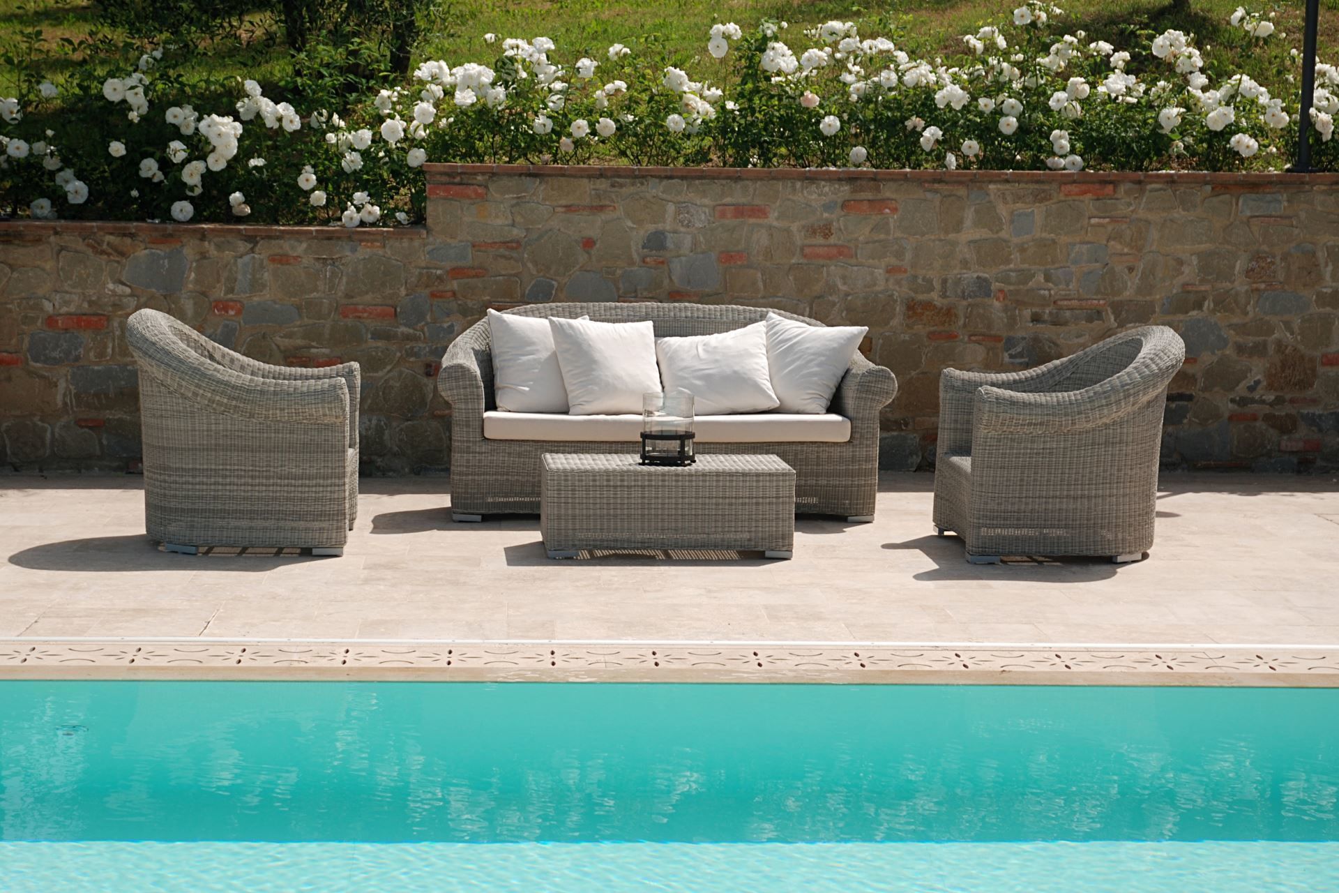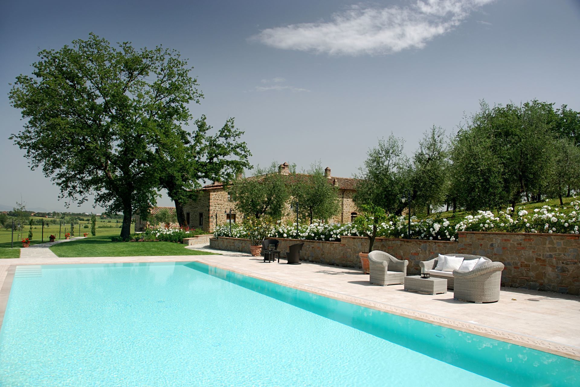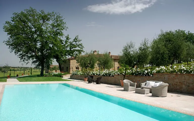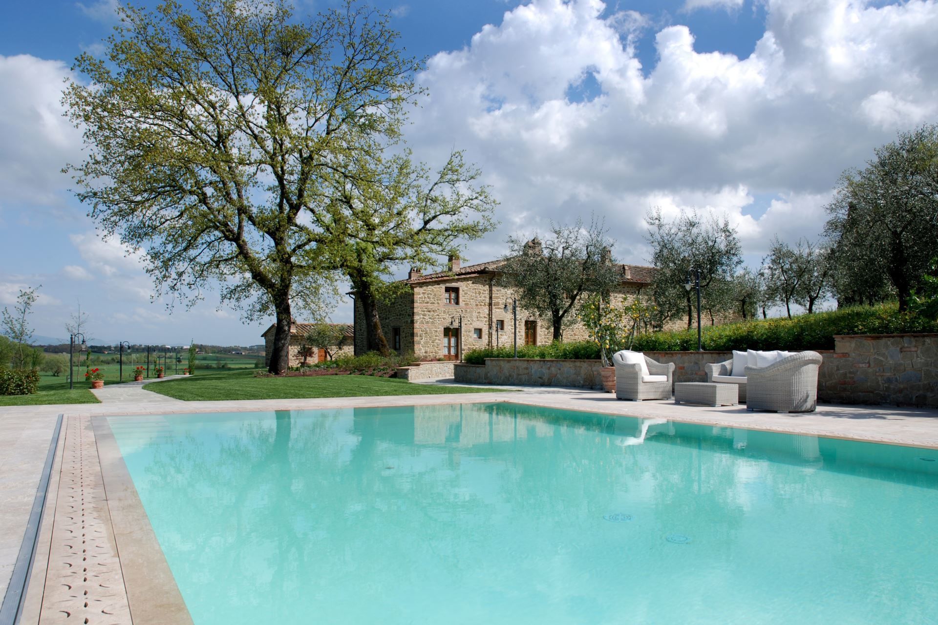 Poggio Cuculo is a beautiful property that can accommodate up to 12 people comfortably in seven bedrooms with six bathrooms and is located in Patrignone around 8km from Arezzo. It is a spacious and elegant villa that boasts a tower, pretty veranda out front, elaborate pool area, tennis courts, outdoor dining areas and much more. A perfect wedding destination for those looking to enjoy the best of a Tuscan setting and modern conveniences.