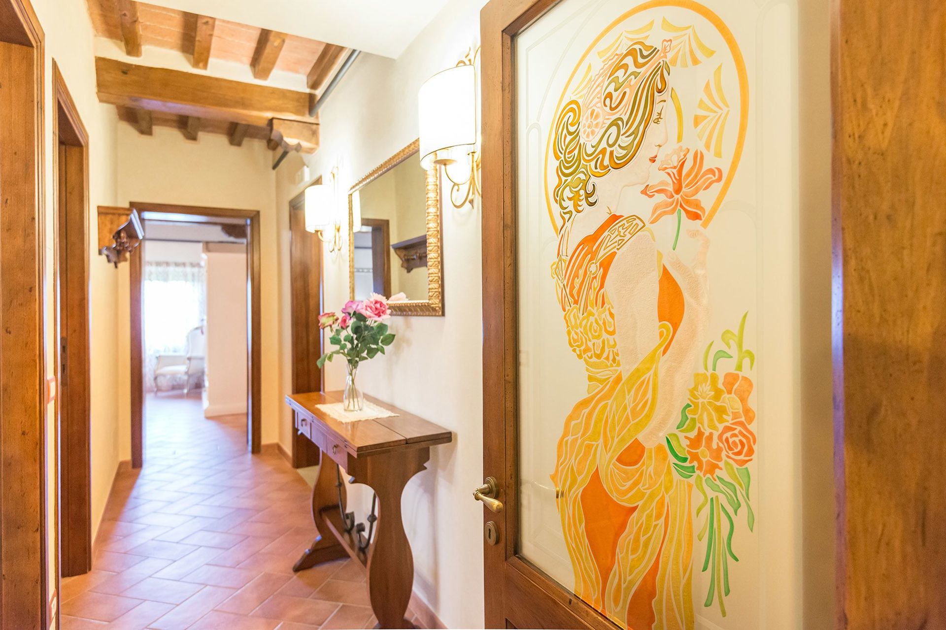 Ground floor: dining area with living room, kitchen and fireplace, two double bedrooms, bathroom with shower.