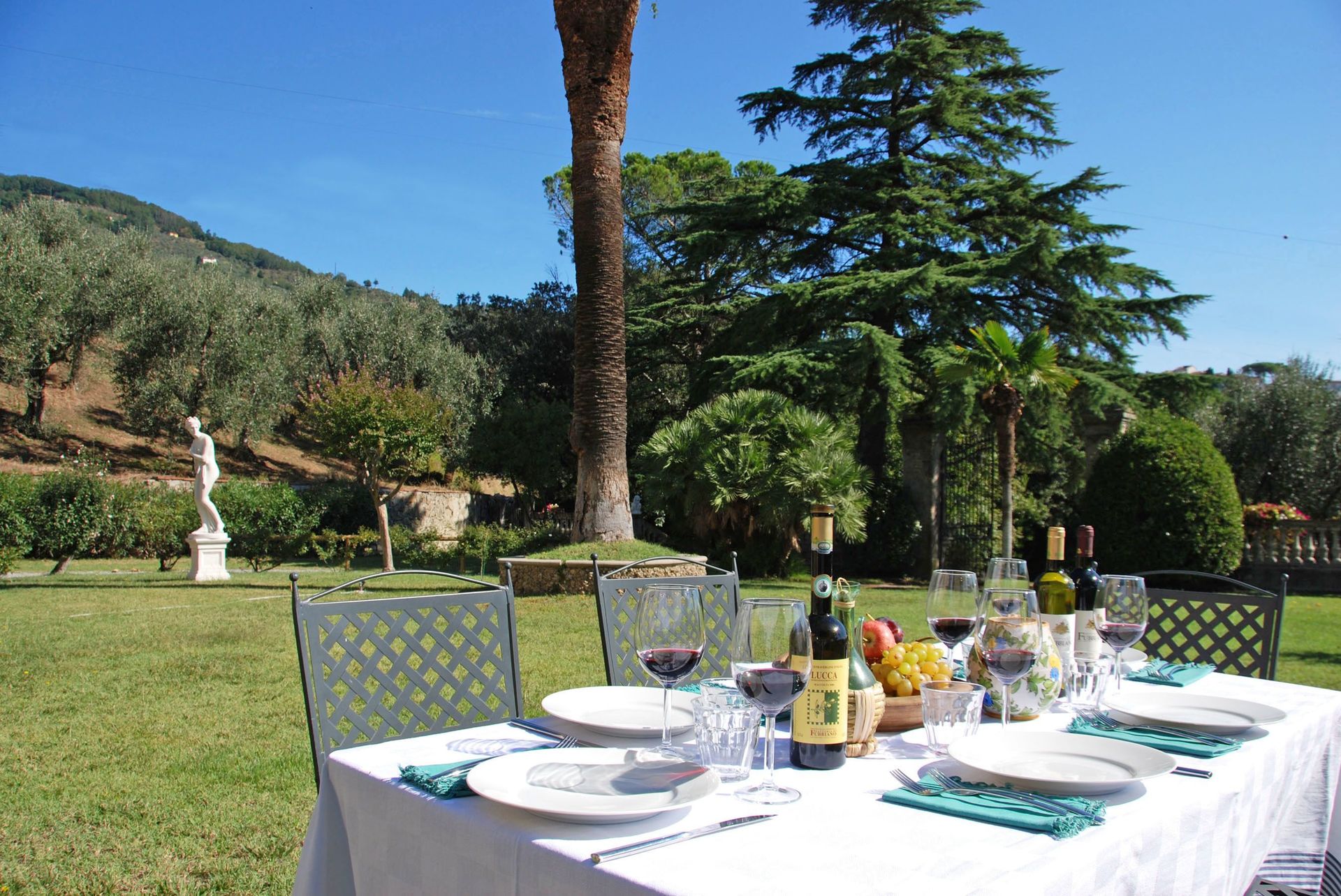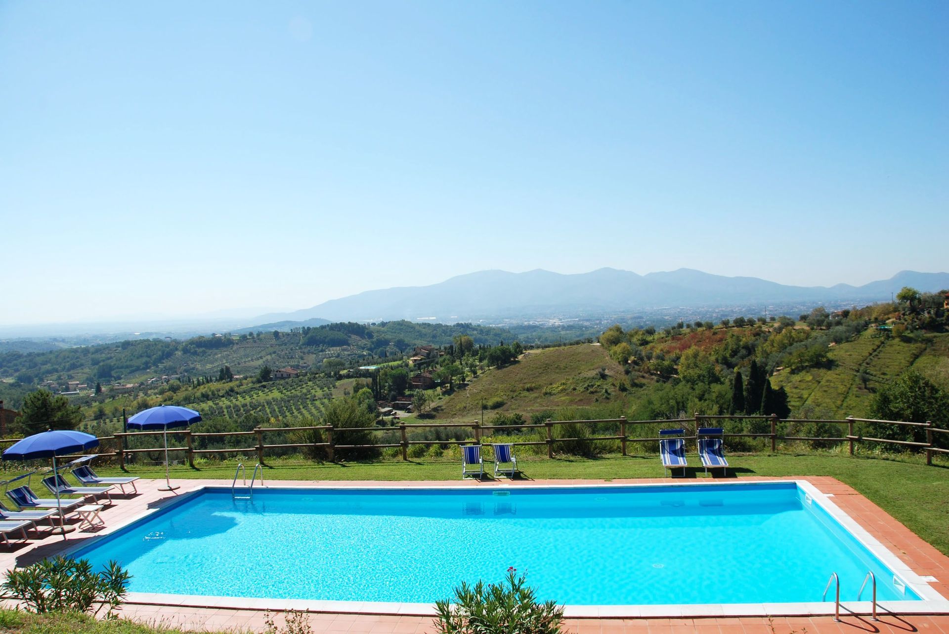 In a sunny position on the slopes of the Luccan hills is an ancient “borgo” (a very small village), Fubbiano, with old country houses, wine cellars (D.O.C. wine is for sale, among the best in the Lucca area) and an olive oil mill. The “borgo” is overlooked by the main villa, a typical Tuscan building dating back to the 18th century. In the grounds there is a private swimming pool in a panoramic position overlooking the plain of Lucca. Beyond the formal garden and terraces there is a small oak wood with a shady path leading to an ancient fountain. Nearby, are the “Grotte Giusti Terme”, a health spa and beauty centre, where guests staying at Fubbiano will have special terms. The Englishspeaking management is available for assistance and can arrange guided tours in the area.