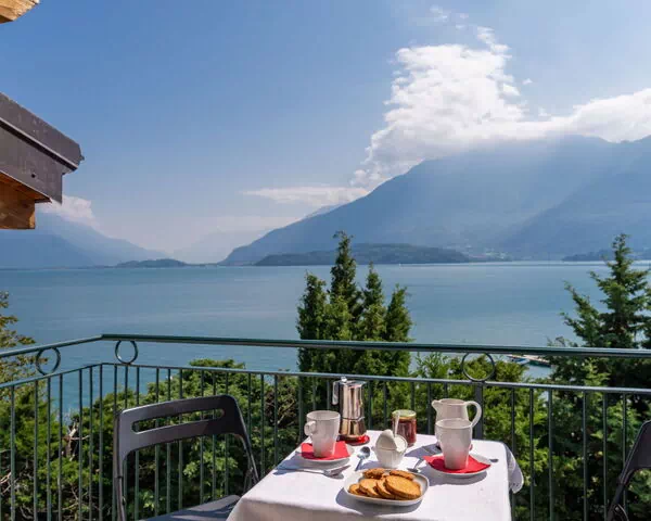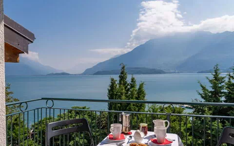 This elegant vacation rental is a 3-room apartment of 100 square metres, situated on the top floor and offering a bright, beautifully furnished, and cosy atmosphere throughout. The apartment accommodates a maximum of 5 guests across 2 bedrooms and 2 bathrooms. The living and sleeping area features 1 double sofabed along with a dining table, making it a versatile and welcoming space for guests. A separate double bedroom provides comfortable private accommodation, while a third room is fitted with 2 single beds, ensuring flexible sleeping arrangements for all guests. The open kitchen is fully equipped and connects seamlessly to the living area. The apartment includes 2 bathrooms, one with a bath and WC and another with a shower and WC. A small balcony accessible from the living area is furnished with outdoor furniture and offers a marvellous panoramic view of the lake, the surrounding mountains, and Monte Legnone, which rises to 2609 metres. The apartment also benefits from parquet floors throughout and includes a box-room for additional storage.