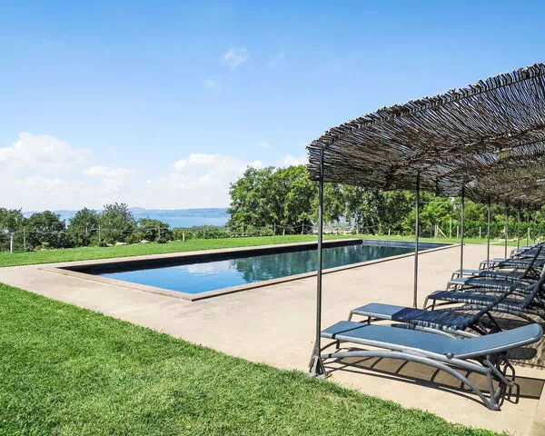 "Chalet del Lago" is accessed via a 50-metre driveway along an unmade road, and parking is available directly at the house for added convenience. The swimming pool, shared among guests of the estate, is available seasonally from 16 May to 6 October, ensuring optimal conditions throughout the warmer period of the year. All outdoor amenities, including the pool and garden areas, are intended for shared use among the property's guests.