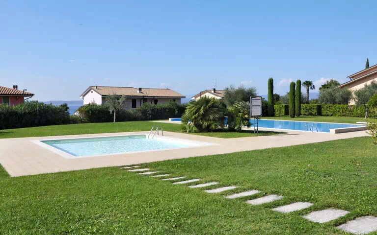 Residence San Marco is a two-story apartment complex comprising 48 units, offering amenities such as a shared garden with a lawn for sunbathing, a swimming pool (14 x 8 m, available seasonally from June 1st to September 30th), a children's pool, an outdoor shower, and parking (limited spaces). It also provides internet Wi-Fi, allowing you to stay connected during your holiday rental. The property offers the convenience of an installment plan for your stay.