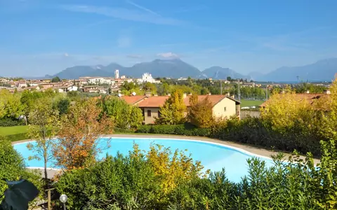 Large, comfortable residence "Garda Golf Green Residence". 50 houses in the residence. 80 apartments in the residence. 600 m from the centre of Polpenazze, 4.5 km from the centre of Manerba, 10 km from the centre of Salò, 5 km from the lake. For shared use: property 10'000 m2, large, well-kept garden (not fenced) lawn, lawn for sunbathing, swimming pool kidney-shaped (1'000 m2, seasonal availability: 15.May. - 05.Sep.). Outdoor shower, terrace. Shop 600 m, supermarket 4.5 km, restaurant 700 m, pebble beach 5 km. Golf course (27 hole) 800 m. The owner does not accept any youth groups. The keys‘ handover takes place by the agency Italvilla in Lazise, 40 km.