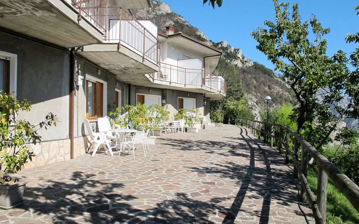 Small residence. 11 apartments in the residence. In the district of Voltino di Tremosine 1.3 km from the centre of Tremosine, on the outskirts, 4 km from the centre of Limone, 16 km from the centre of Riva del Garda, on a slope, 4 km from the lake. For shared use: property 1'500 m2, terraced garden (not fenced). Patio, garden furniture, barbecue, children's playground. In the house: bicycle rental. Stepped path to the house. Parking on the premises. Shop 1.3 km, railway station "Rovereto" 30 km, pebble beach "Limone" 4 km.