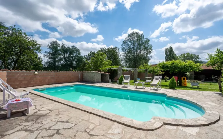 The "Antica Cascina" offers a truly immersive outdoor experience. Bask in the serenity of the well-kept garden with its natural elements and a sprawling meadow. Take a refreshing dip in the seasonal swimming pool, measuring 9 x 4 meters with a depth ranging from 100 to 200 cm, available from May 1 to October 31. Enjoy alfresco dining or simply relax in the tranquil surroundings of the property's expansive 10,000 m2 grounds.