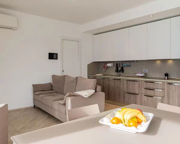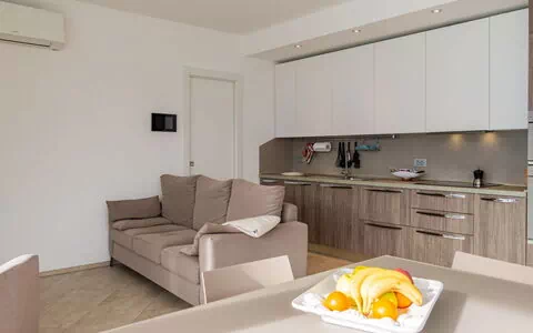 This property is reserved exclusively for non-smokers. The registration code for this accommodation is IT013107C2F5EM5G5E. The terrace is partly roofed and furnished with terrace furniture and 2 deck chairs, providing an outdoor space suitable for various weather conditions. The balconies accessible from both bedrooms further extend your connection to the exceptional natural landscape that surrounds the property.