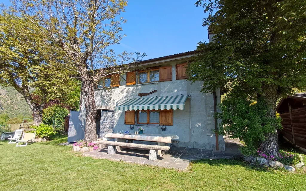 The vacation home offers several amenities, including a barbecue area, deck chairs (2), and a sitting area. It also provides facilities for families, such as a children's high chair and a baby cot. Pets are welcome, with a maximum of two pets or dogs allowed. The house is equipped with oil heating and natural stone floors. You can enjoy a marvellous panoramic view of the lake and the mountains from the terrace.