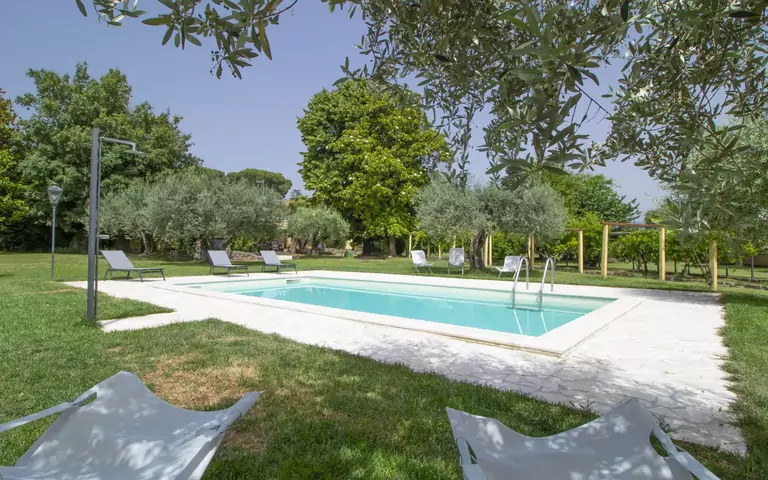 Beautiful, comfortable villa "Casale Barbi", detached, surrounded by trees and fields. Property composed of main house and outbuilding 1.5 km from the centre of Velletri, 40 km from the centre of Roma, residential area (villas), 35 km from the sea, 15 km from the lake. Private: well-kept garden 2'000 m2 (fenced) with lawn and trees, swimming pool (4 x 8 m, depth 110 cm, 23.05.-03.10.). Patio, garden furniture, barbecue, pool maintenance by the owner/gardener. Stepped path to the house. Parking on the premises. Supermarket 1.5 km, sandy beach "Anzio" 35 km. Nearby attractions: Rocca Di Papa 17 km, Castel Gandolfo 19 km, Frascati 26 km. Well-known lakes can easily be reached: Nemi 10 km, Albano 12 km. Please note: car recommended. The owner does not accept any youth groups. Residence with electric gates.