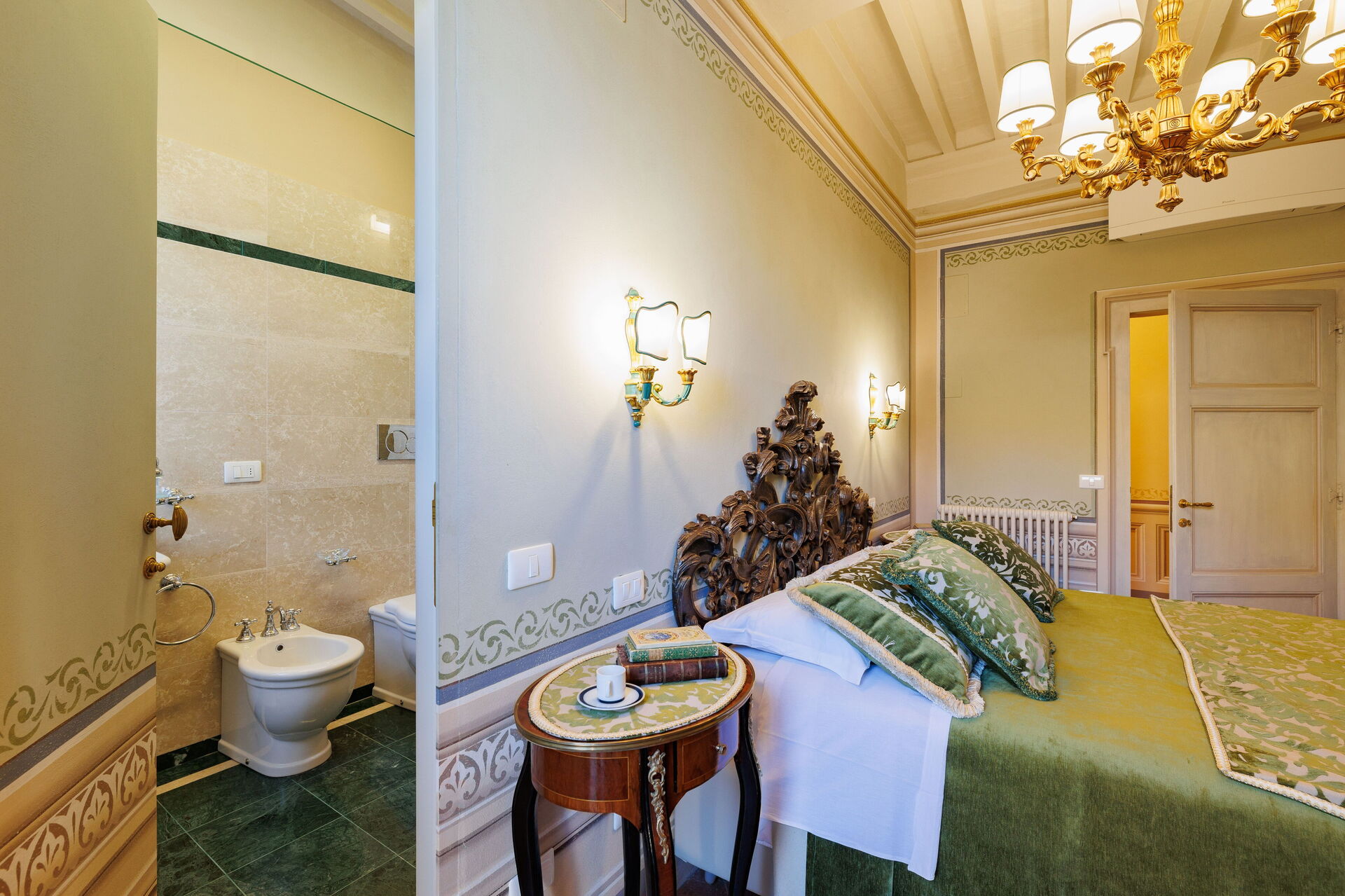Bedroom + Ensuite Bathroom 1: double bed (length: 190m, width: 160m), WIFI internet, air conditioning, basin, toilet, bidet, shower, hairdryer, exit to the terrace.