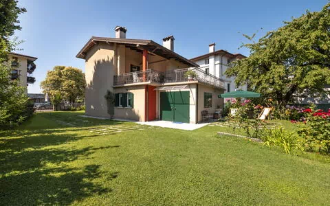 Offering a beautiful and well-kept garden with lawn and trees, this single-family house "Casa Con Le Rose" provides ample outdoor space on its 700 m2 private, fenced property. Located just 500 meters from the center of San Daniele Del Friuli, Italy, it offers convenient parking on the premises and is equipped with amenities like a yard, internet WiFi, and parking, making it an ideal vacation rental option.