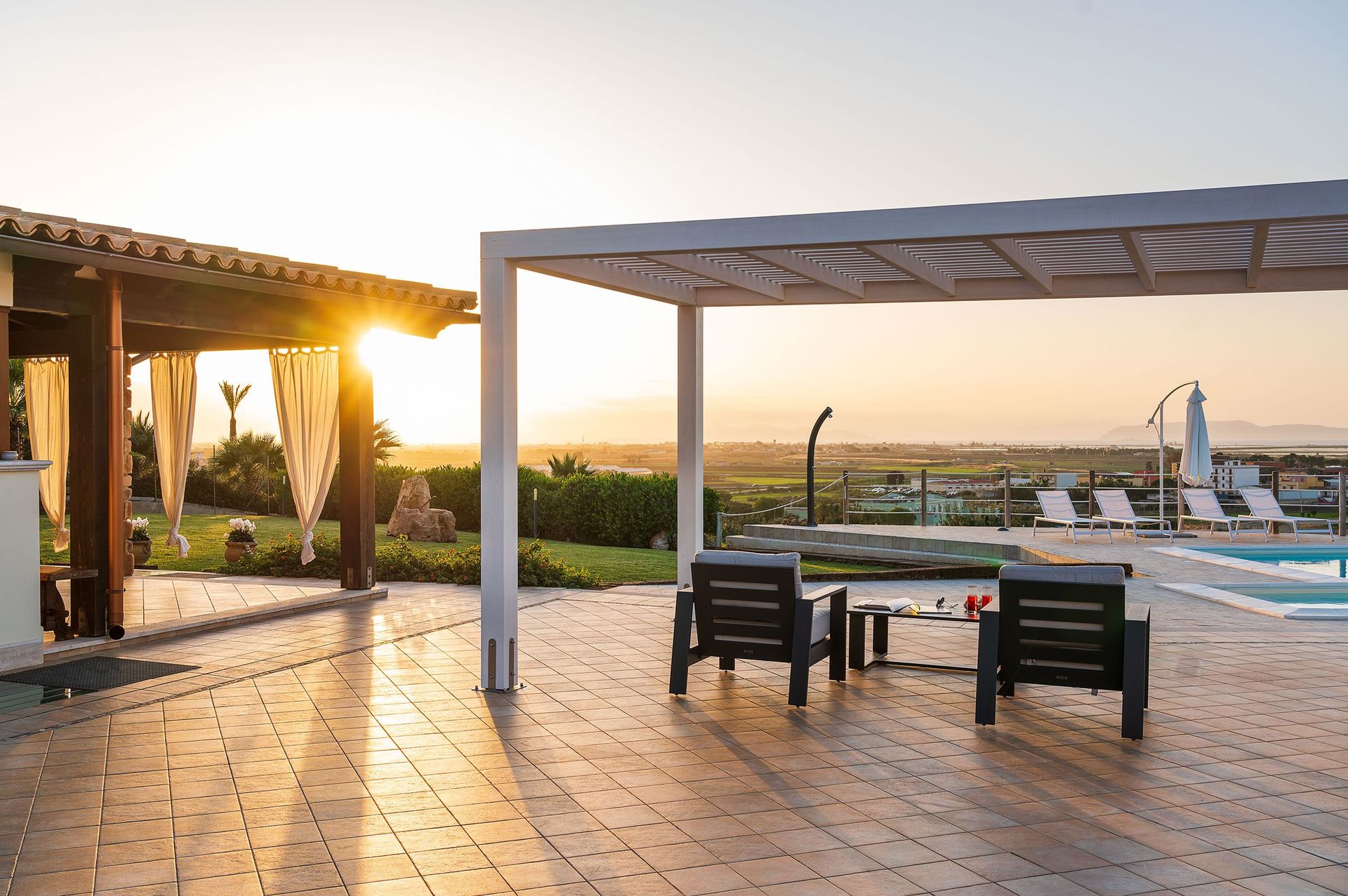 Bella Vista Luxury Villa is located in Paceco, Italy and only 101 km (63 mi) from Palermo in the tourist area "Western Sicily". Holiday rental Bella Vista Luxury Villa is a beautiful property (300 sq m) that includes private pool, WiFi internet and air conditioning. The property can sleep up to nine guests comfortably in five bedrooms with four bathrooms.