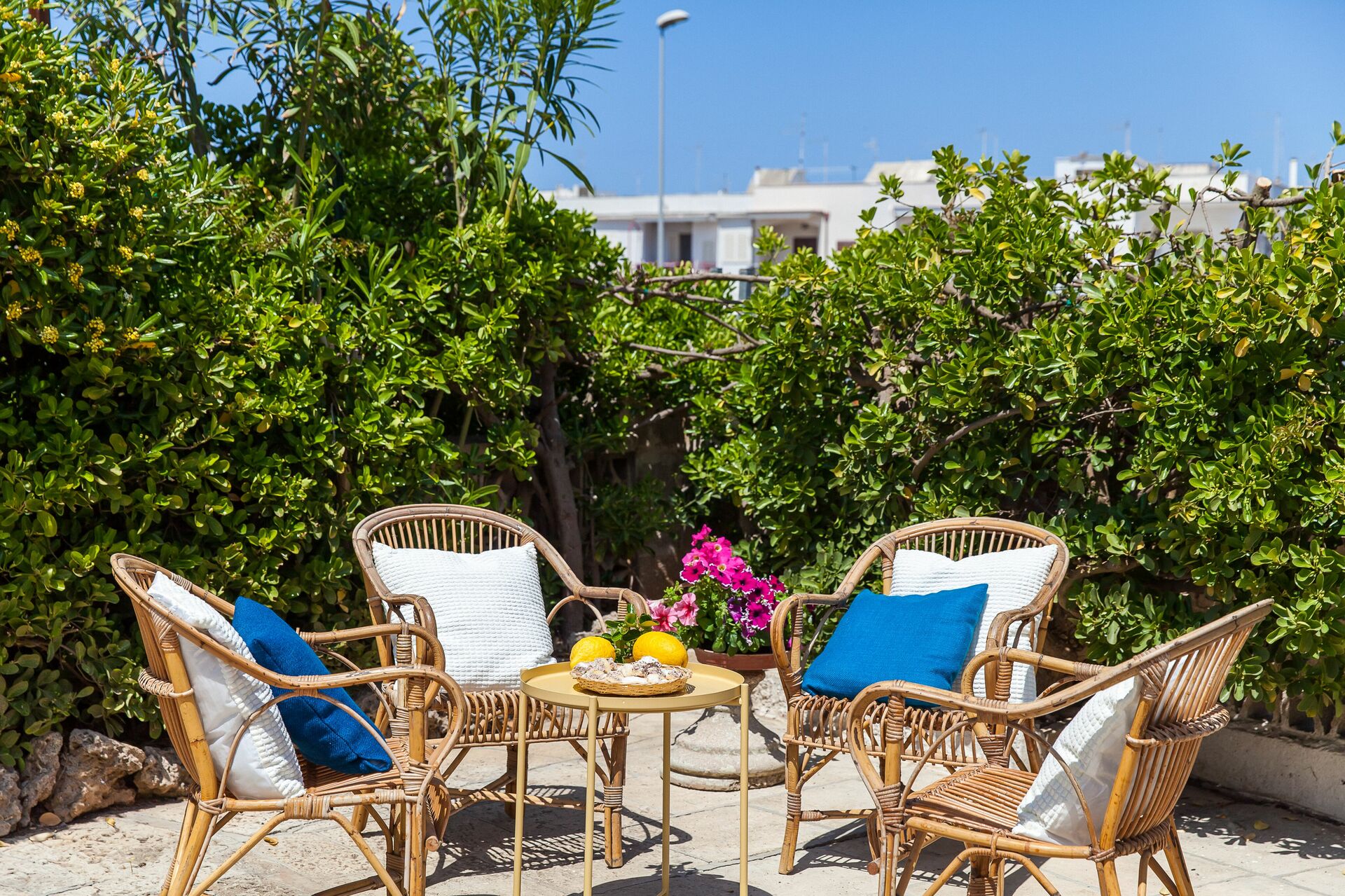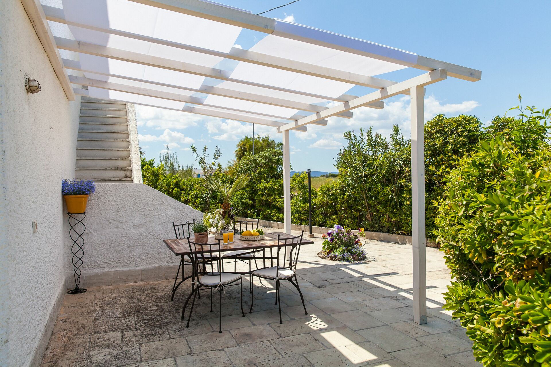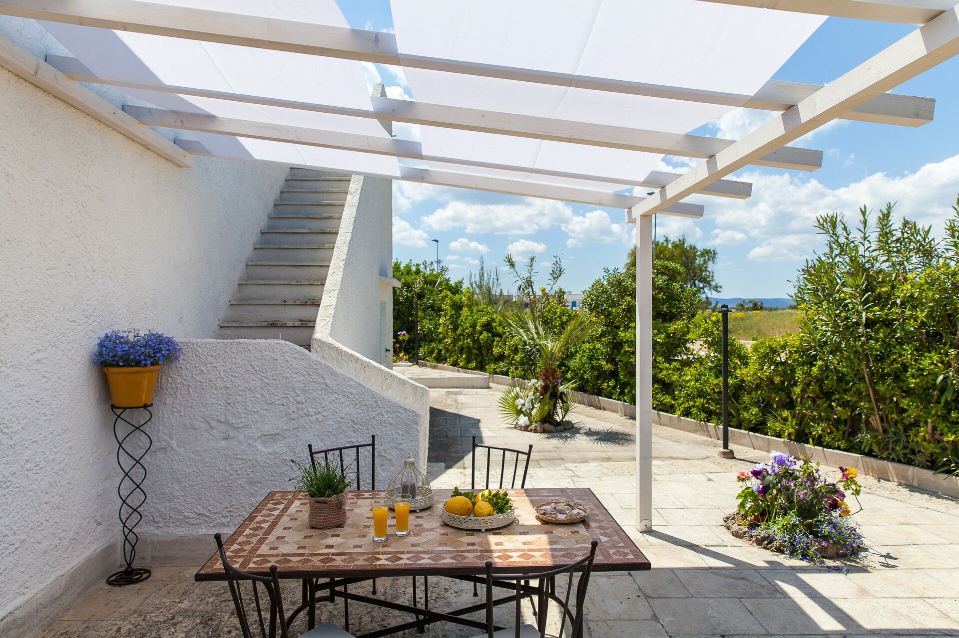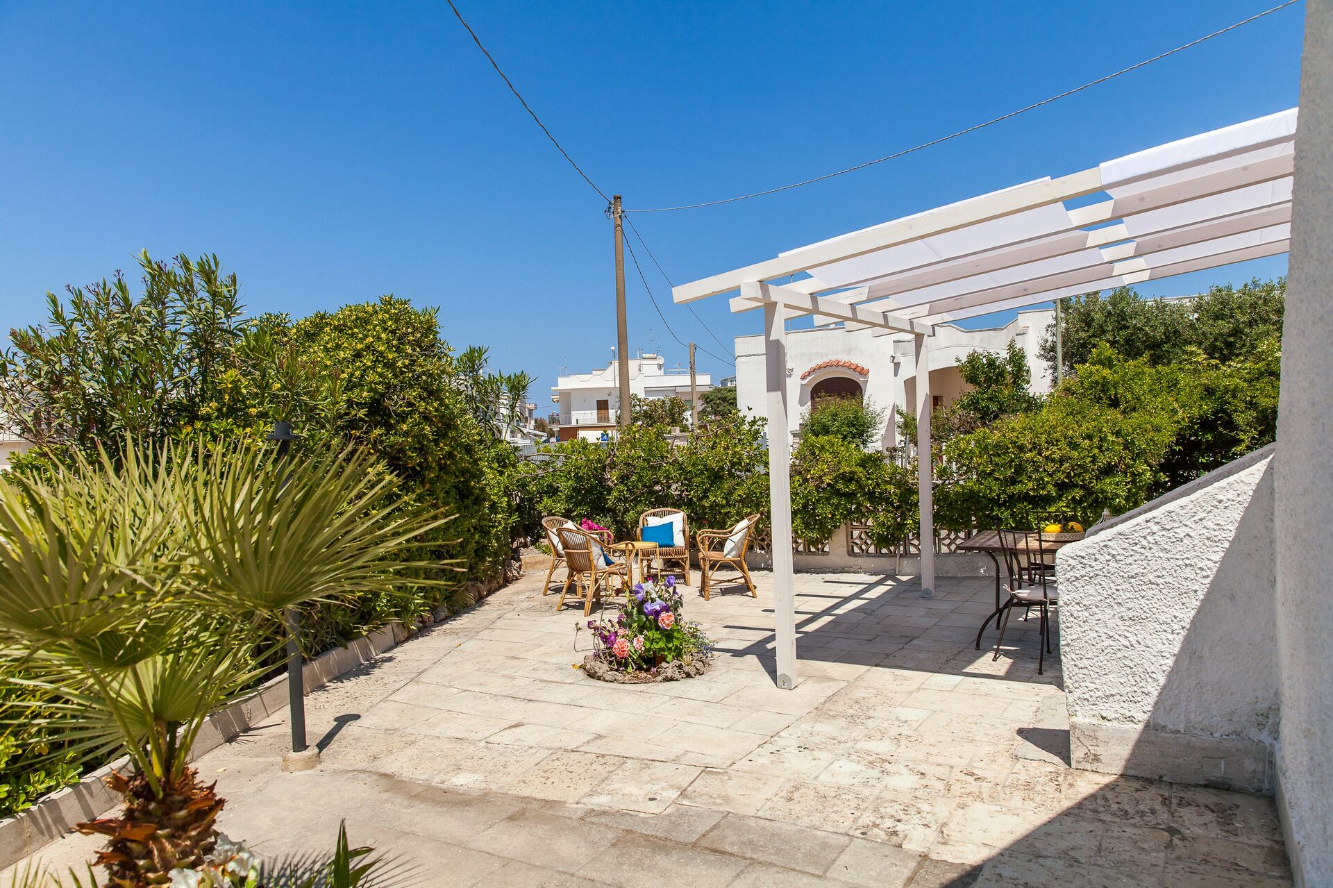 When you arrive you will be greeted by the owner or manager where you’ll find a beautiful clean well-maintained property perfect for a relaxing holiday in Apulia. After a hectic day of visiting museums, spend some time with friends and family enjoying a glass of wine - a perfect way to relax at the end the day. If you enjoy cooking for family and friends there is a well-equipped kitchen including plenty of tableware and cutlery for up to five people. If you prefer to dine 'al fresco', there is a fully furnished veranda where you can enjoy the weather while dining outdoors.