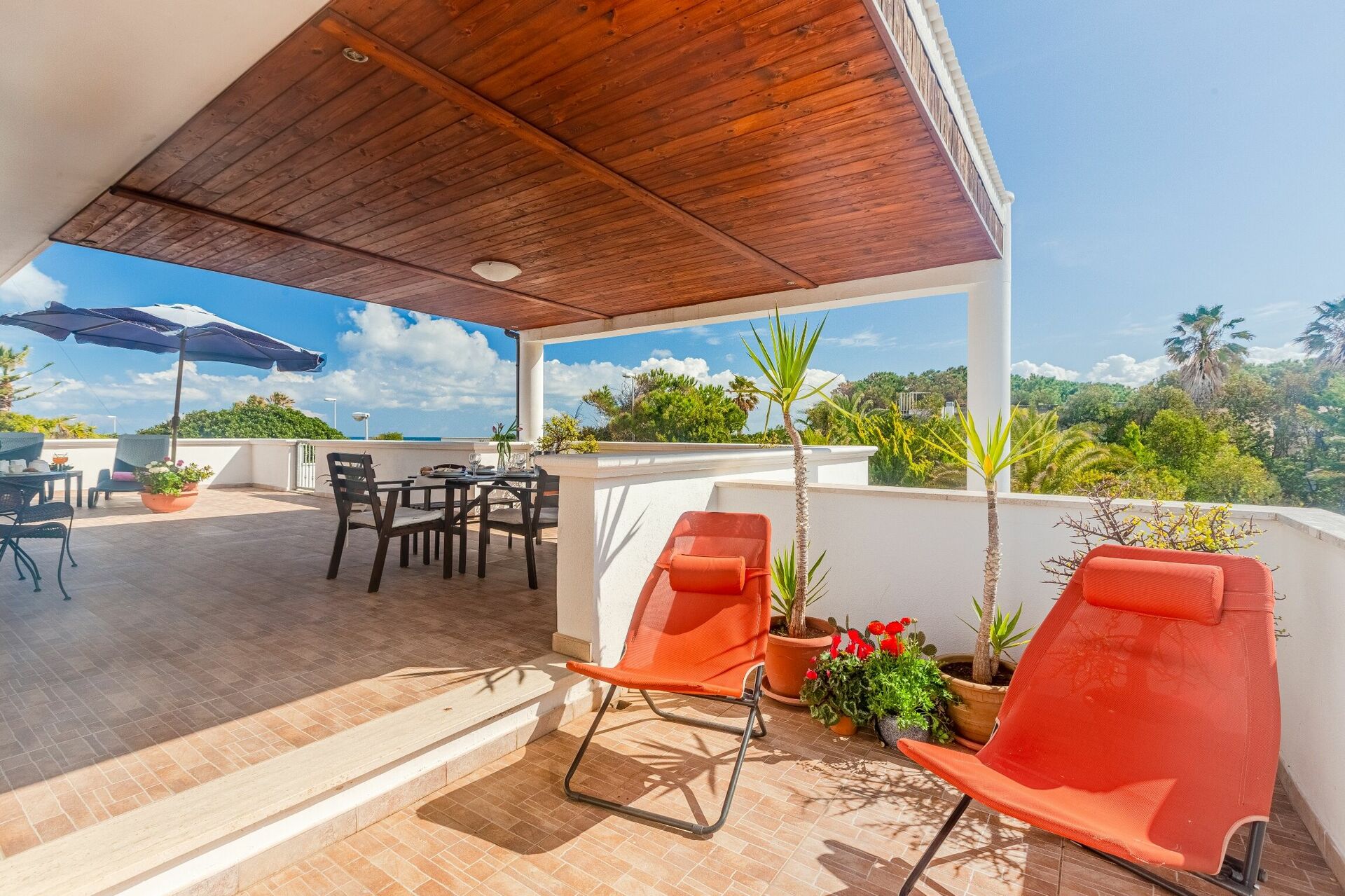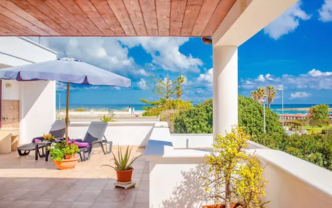 When you arrive you will be welcomed by the owner or manager where you’ll find a beautiful clean well-maintained property with views of the sea perfect for a splendid holiday in Apulia. Regardless of how you spend your days - sightseeing, shopping, visiting museums or just driving in the countryside, when you arrive home you can unwind with your family and friends for a perfect ending to another day in Apulia. Also available outdoors are a patio and barbecue grill. If you enjoy cooking for family and friends there is a well-equipped kitchen including plenty of tableware and cutlery for up to five people. If you prefer to dine 'al fresco', there is a fully furnished veranda where you can enjoy the weather while dining outdoors.