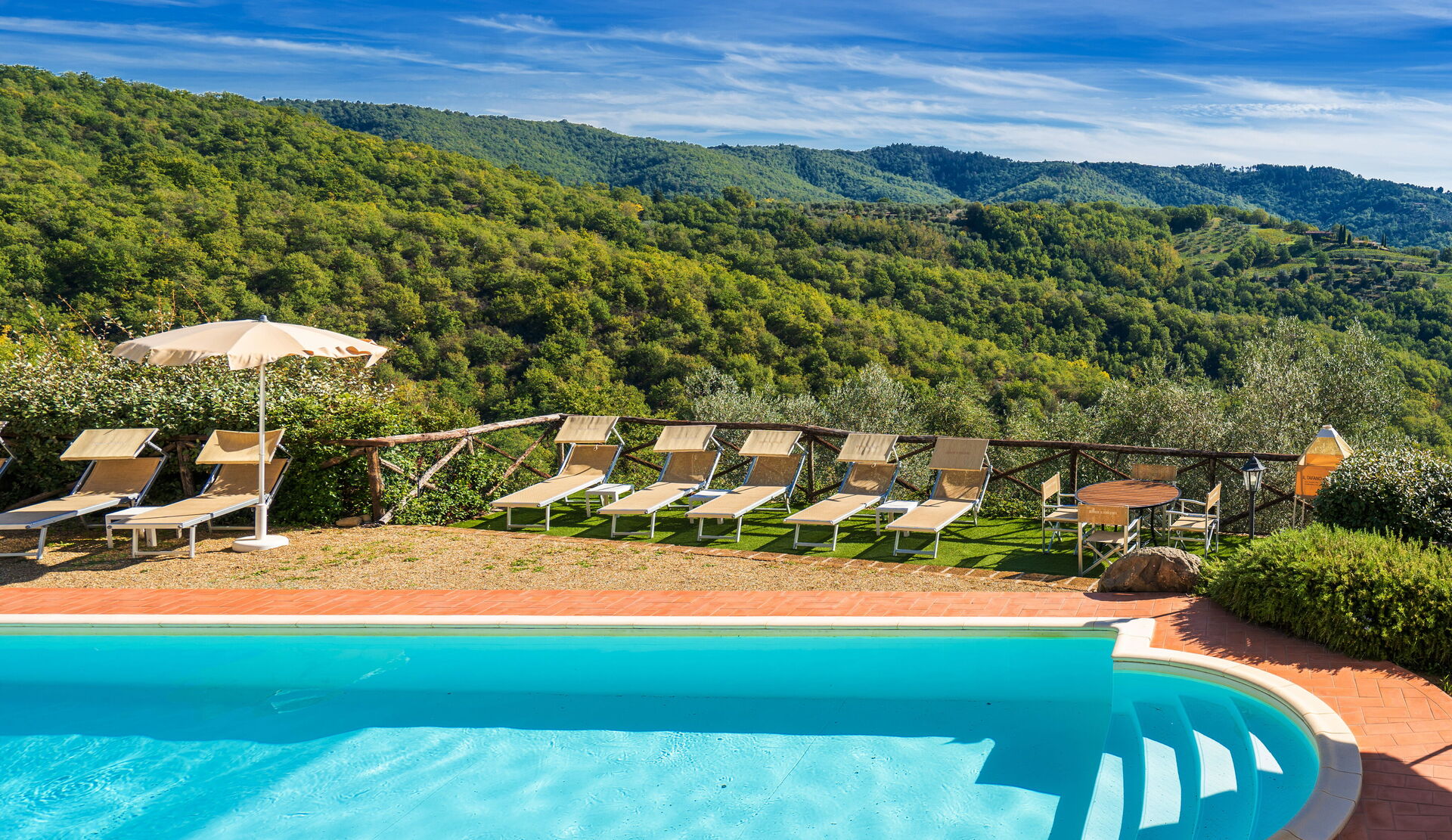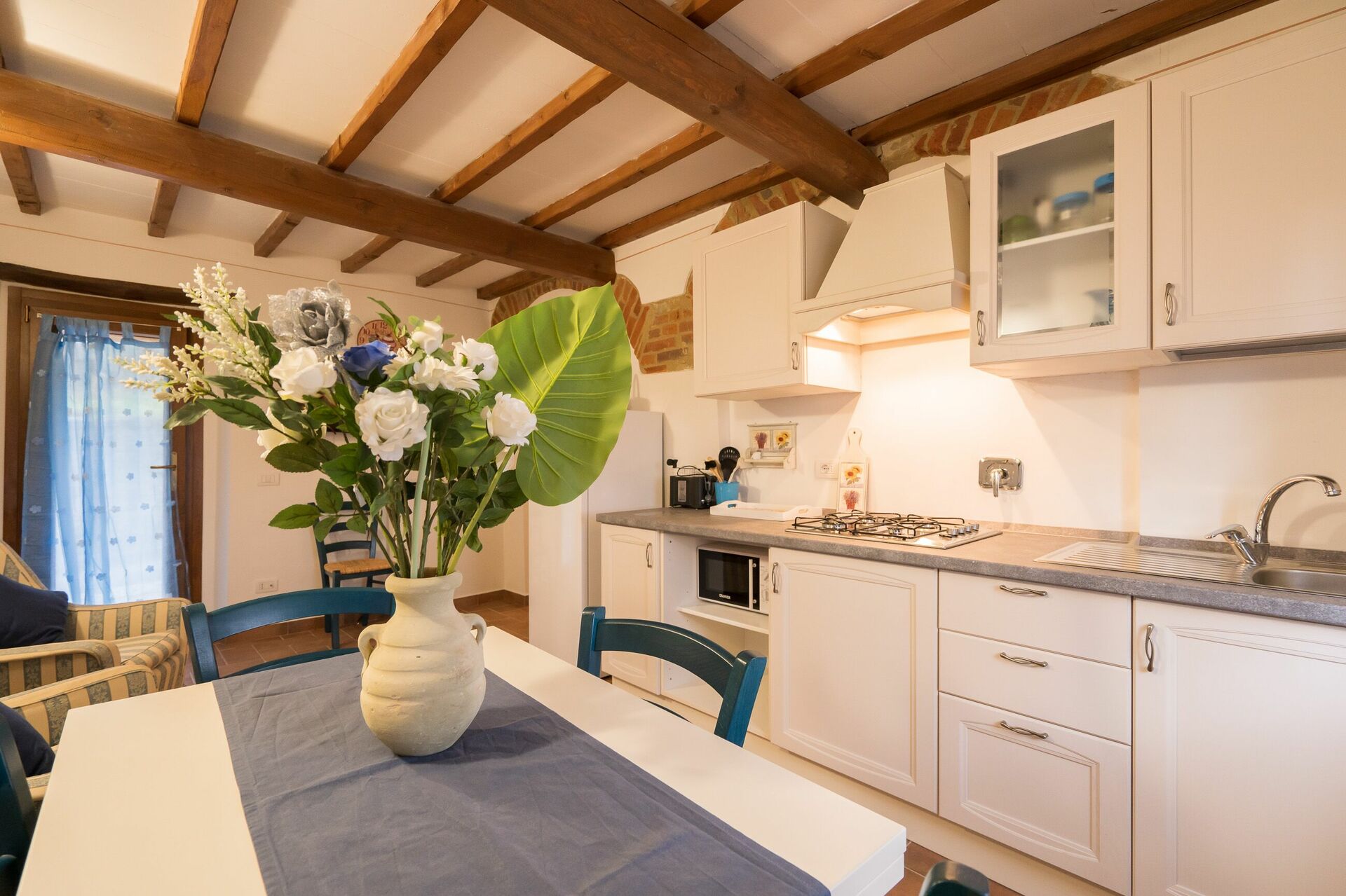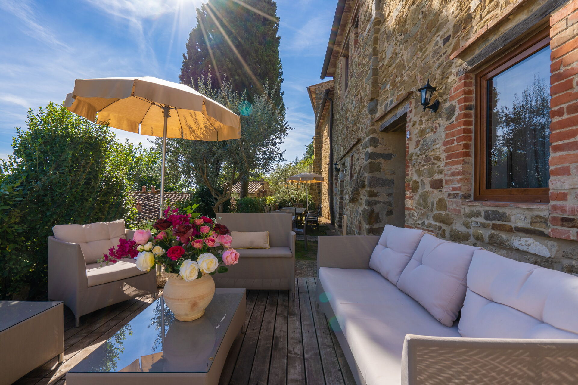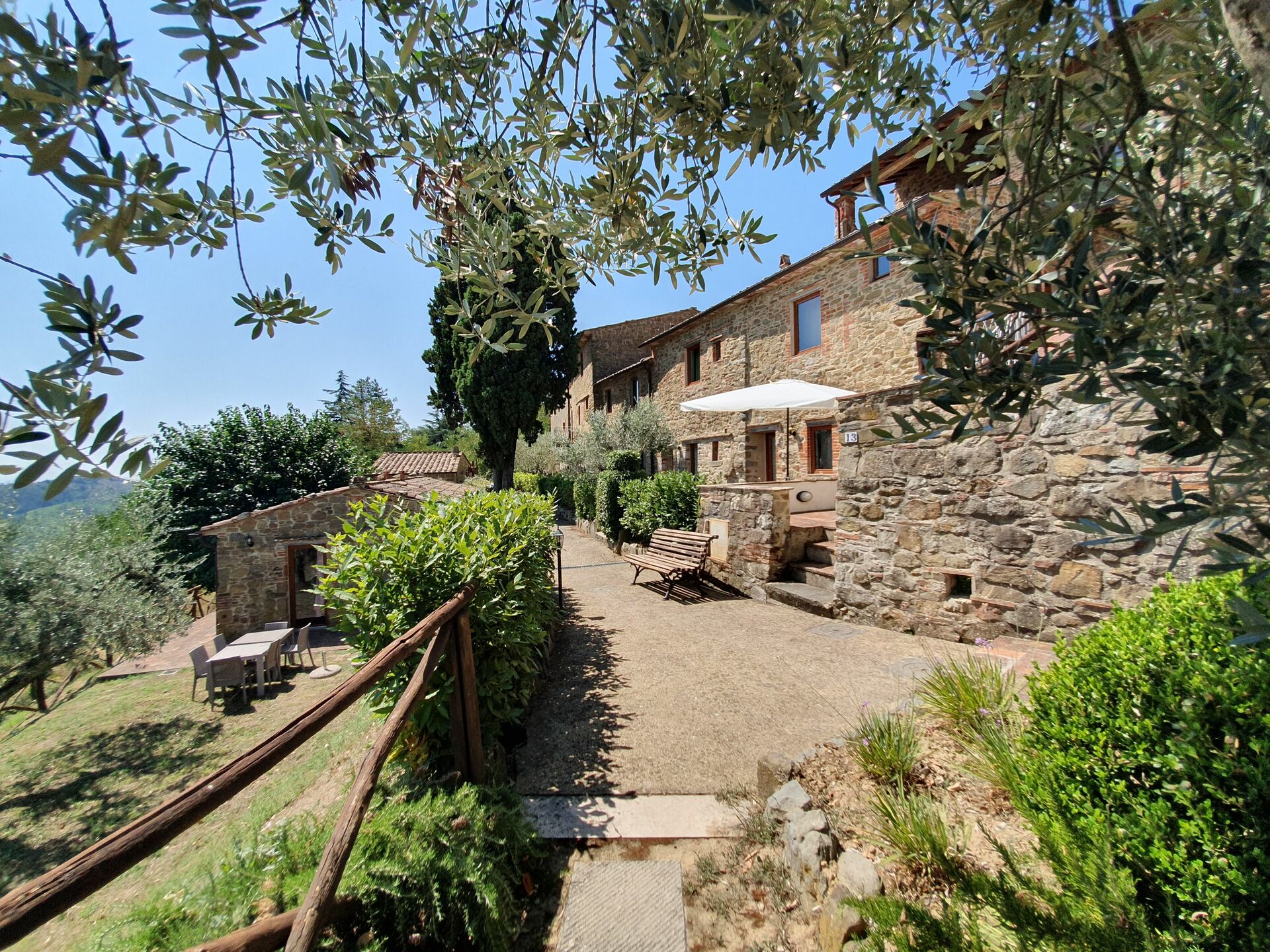Upon arrival at Borgo San Vincenti you’ll find a beautiful clean well-maintained property with views of the hills ideal for a splendid holiday in Tuscany. For your enjoyment you will find a private pool where you can relax while enjoying a nice cold beverage after a busy day of sightseeing. Sharing a meal with friends and family is a huge part of the Tuscan culture. Take advantage of the well-equipped kitchen to prepare meals using local produce while on your holiday. The kitchen includes coffee machine, microwave, toaster and refrigerator, as well as, plenty of tableware and cutlery for up to 22 people. Dine 'al fresco' like a real Tuscan, the fully furnished is the perfect setting to enjoy food, family and the beautiful Tuscan weather.