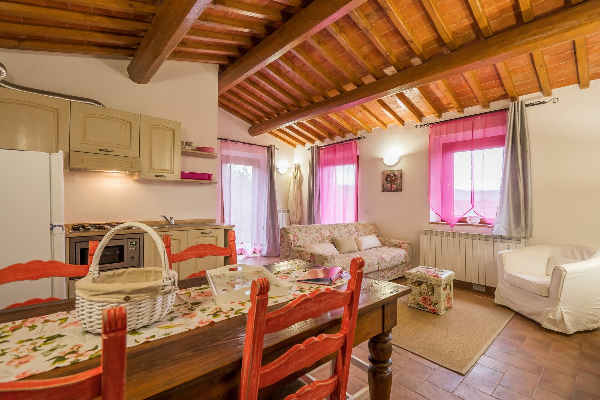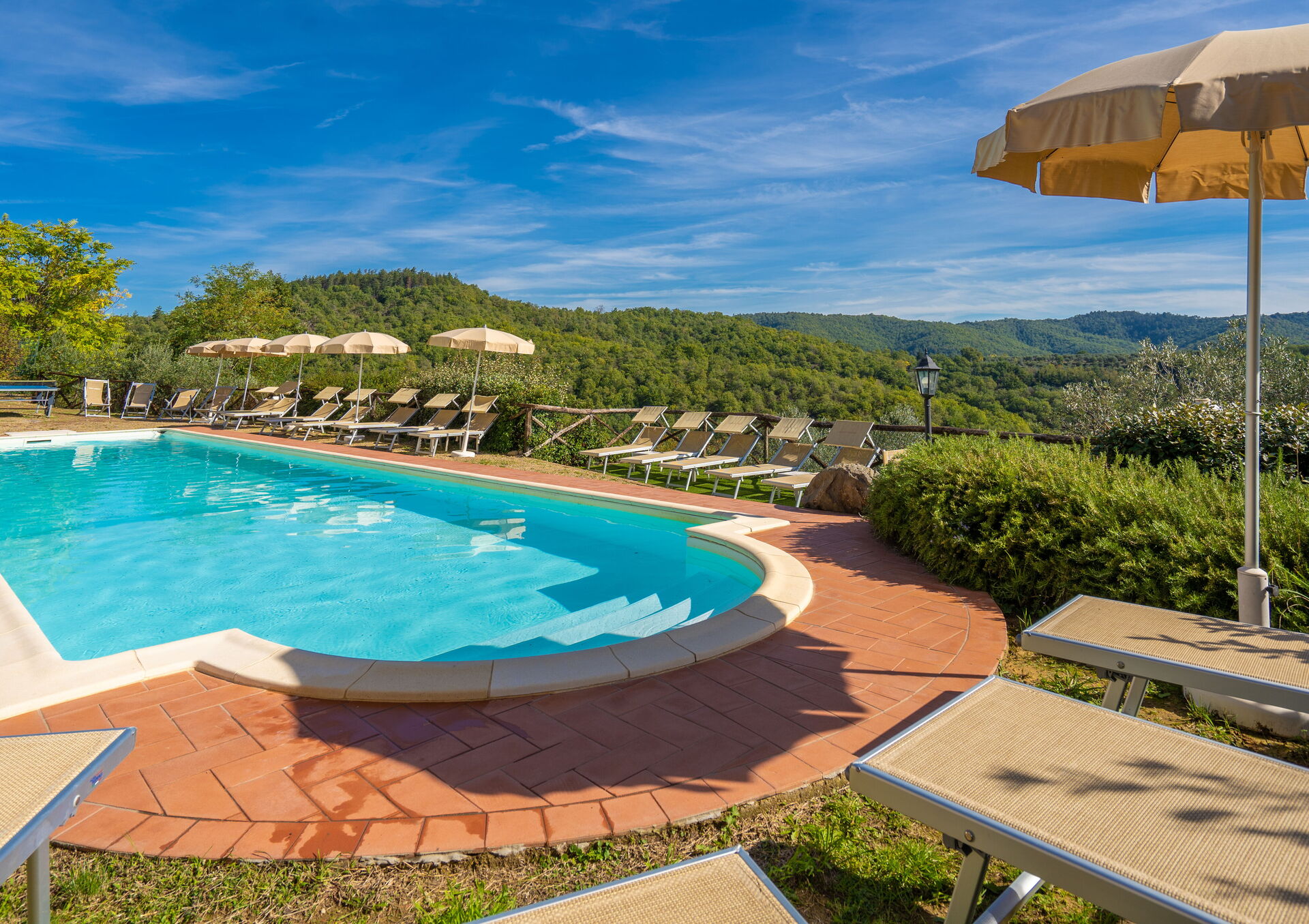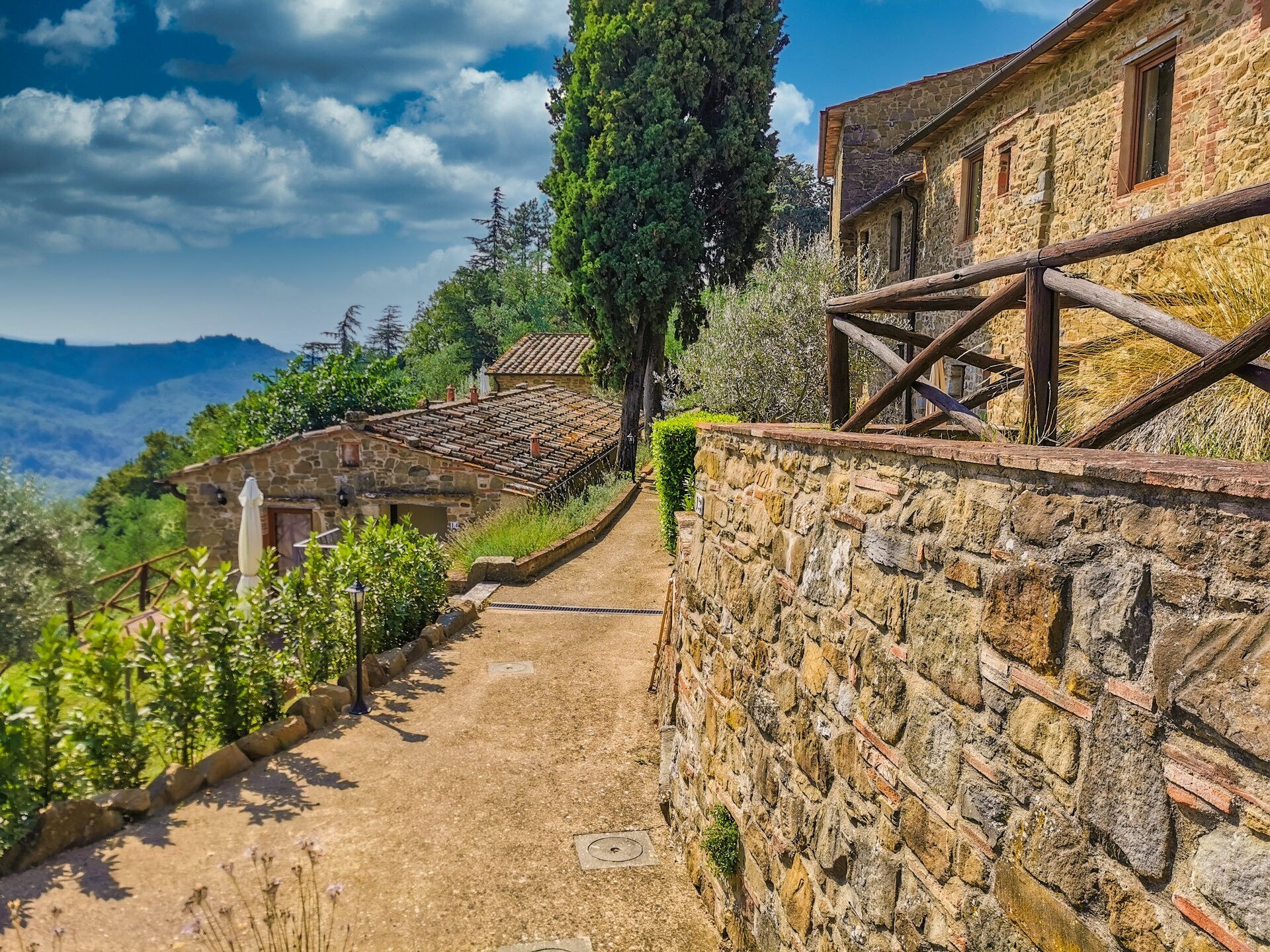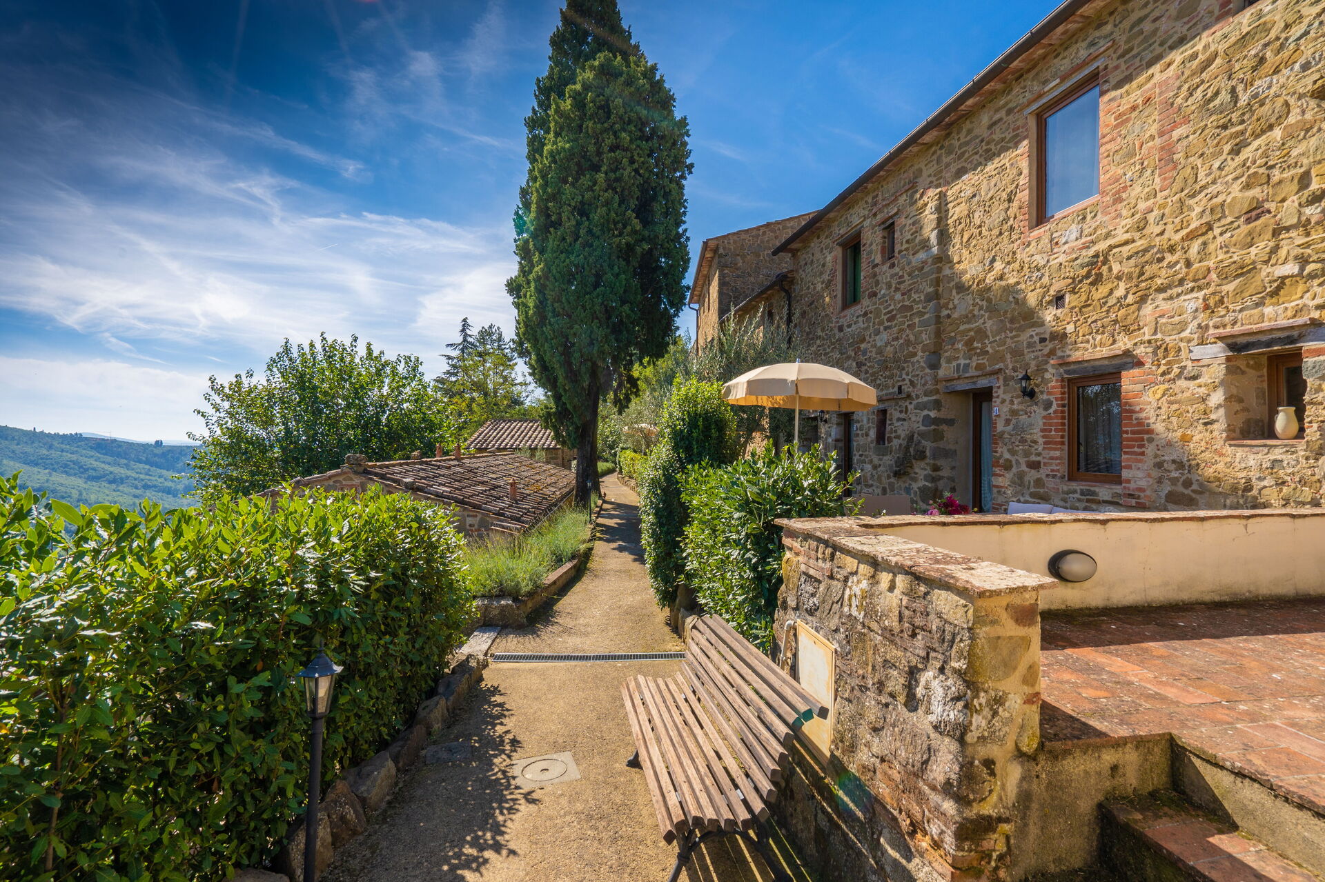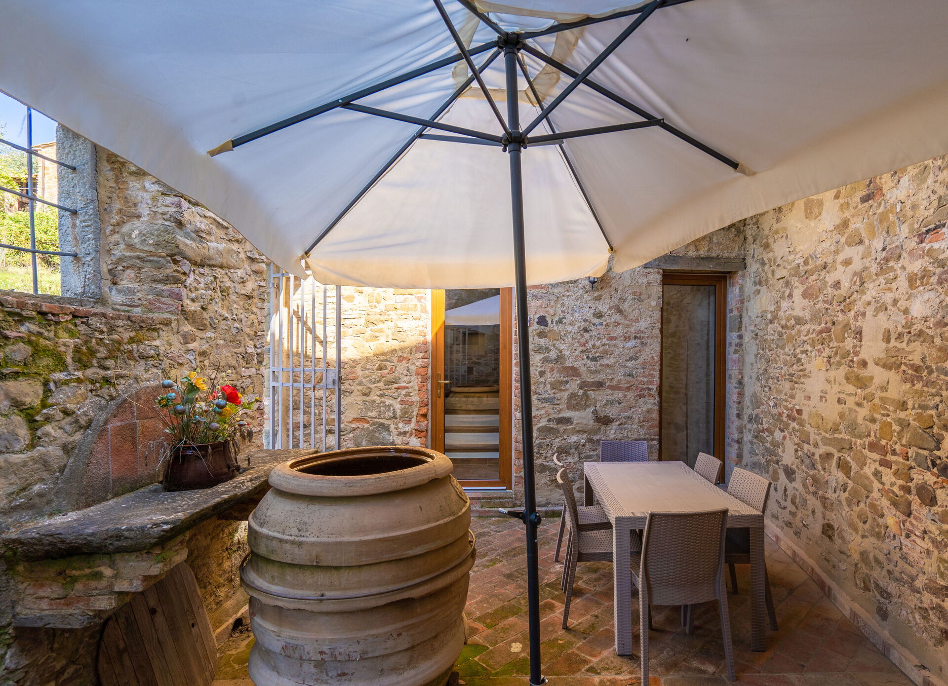 Upon arrival at Borgo San Vincenti you’ll find a beautiful clean well-maintained property with views of the hills ideal for a splendid holiday in Tuscany. For your enjoyment you will find a private pool where you can relax while enjoying a nice cold beverage after a busy day of sightseeing. Sharing a meal with friends and family is a huge part of the Tuscan culture. Take advantage of the well-equipped kitchen to prepare meals using local produce while on your holiday. The kitchen includes coffee machine, microwave, toaster and refrigerator, as well as, plenty of tableware and cutlery for up to 22 people. Dine 'al fresco' like a real Tuscan, the fully furnished is the perfect setting to enjoy food, family and the beautiful Tuscan weather.