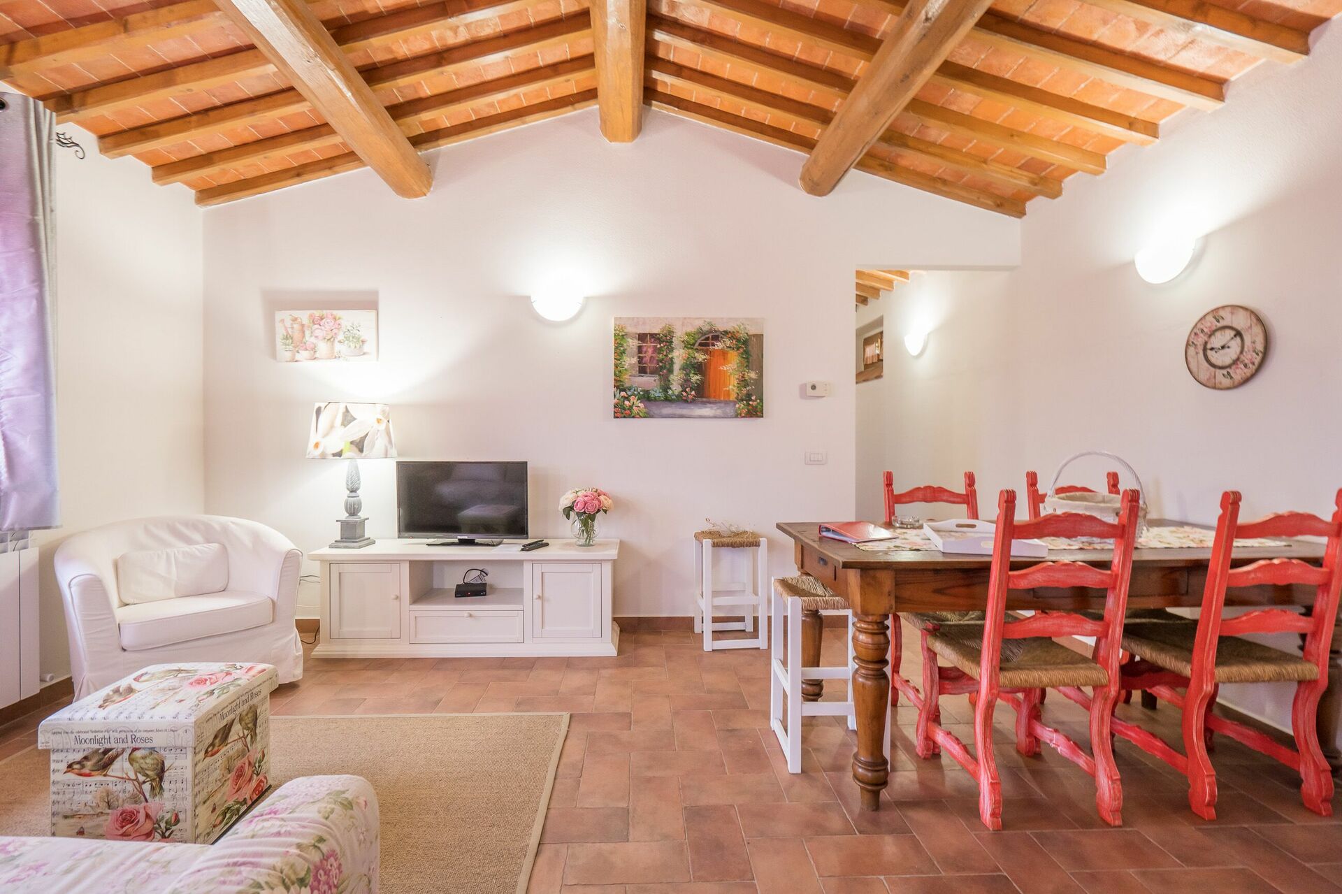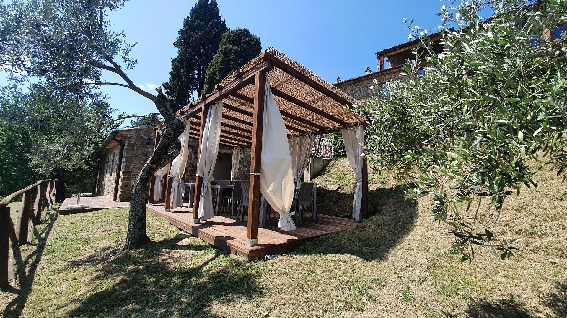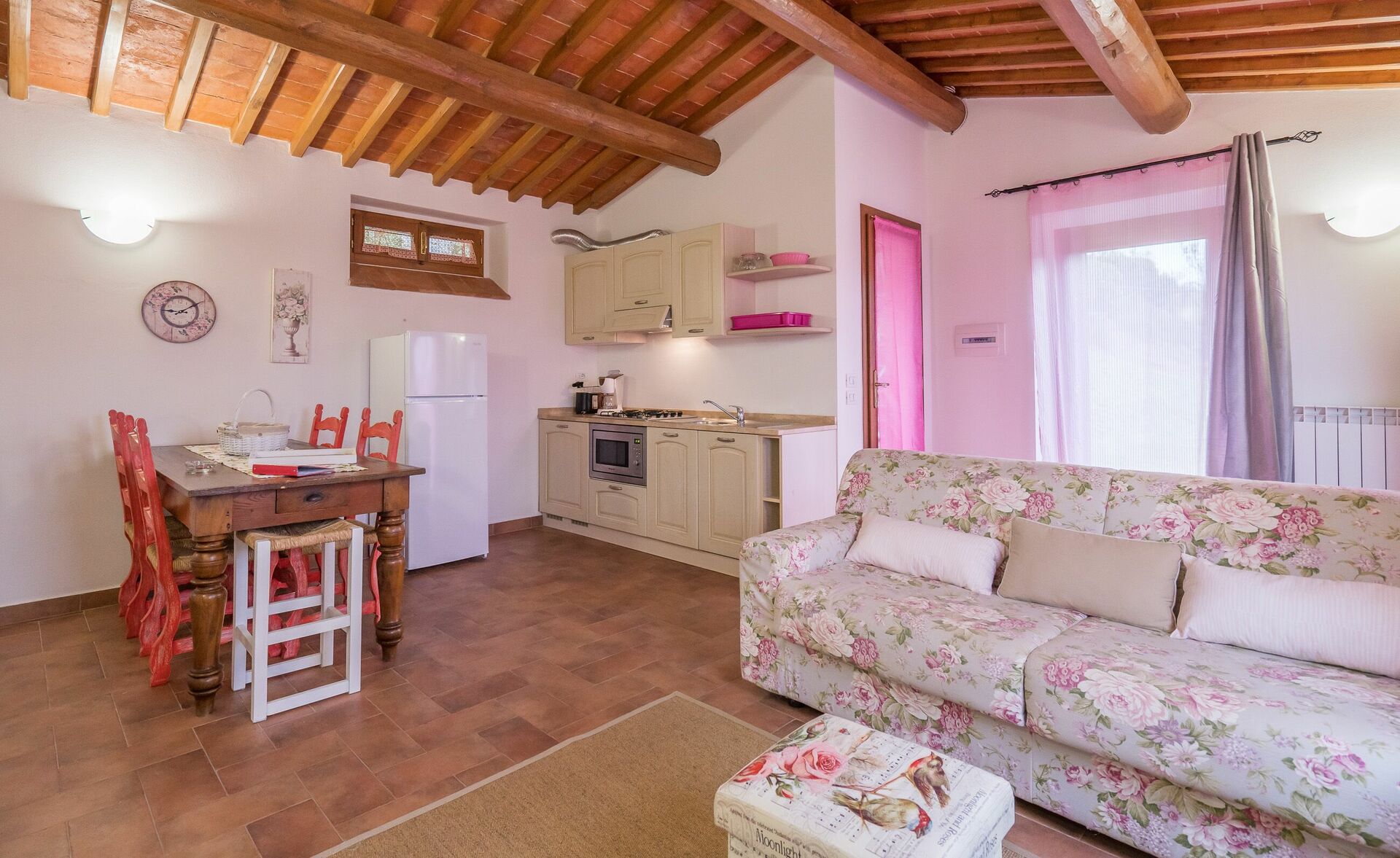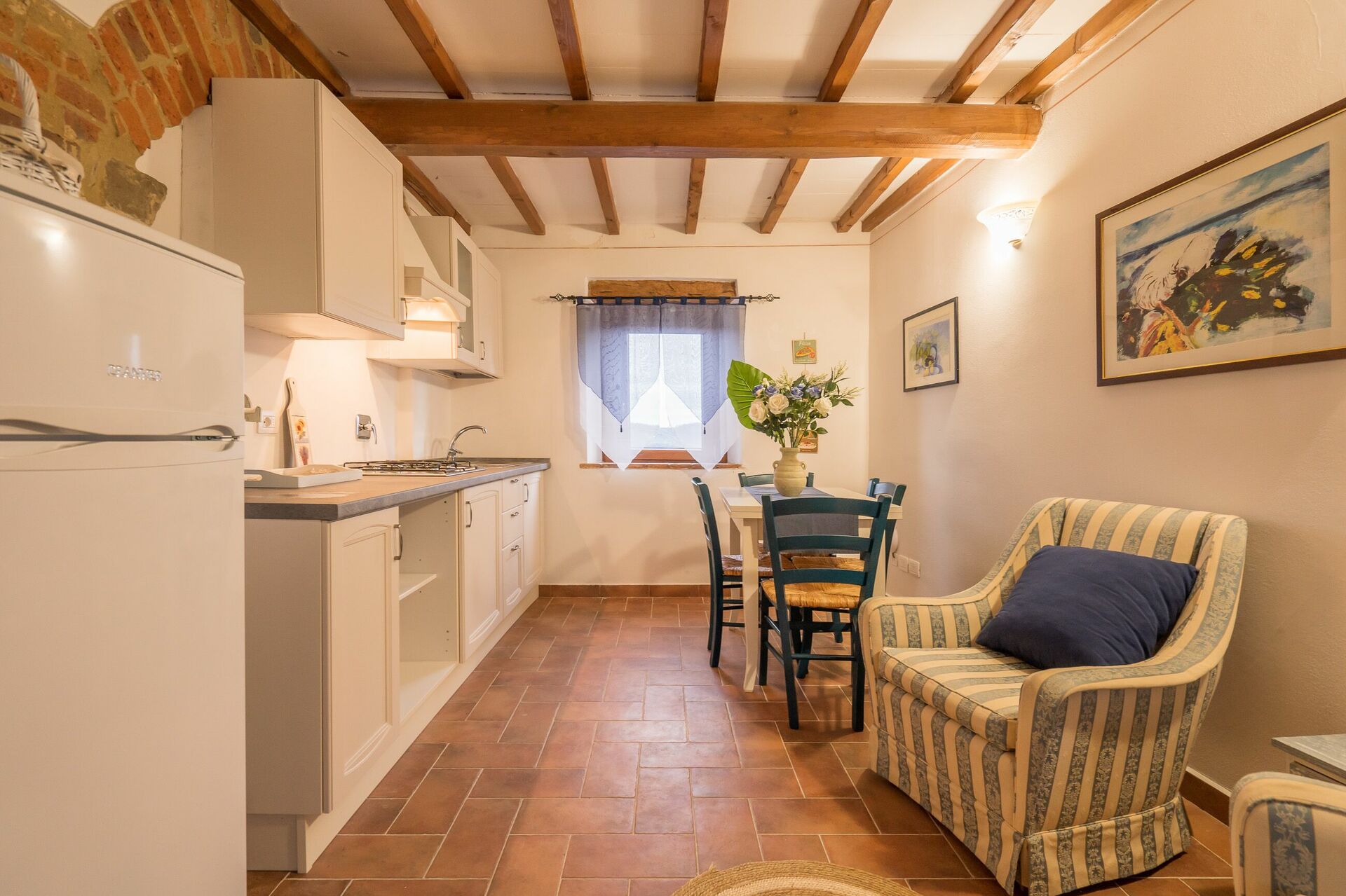 Upon arrival at Borgo San Vincenti you’ll find a beautiful clean well-maintained property with views of the hills ideal for a splendid holiday in Tuscany. For your enjoyment you will find a private pool where you can relax while enjoying a nice cold beverage after a busy day of sightseeing. Sharing a meal with friends and family is a huge part of the Tuscan culture. Take advantage of the well-equipped kitchen to prepare meals using local produce while on your holiday. The kitchen includes coffee machine, microwave, toaster and refrigerator, as well as, plenty of tableware and cutlery for up to 22 people. Dine 'al fresco' like a real Tuscan, the fully furnished is the perfect setting to enjoy food, family and the beautiful Tuscan weather.