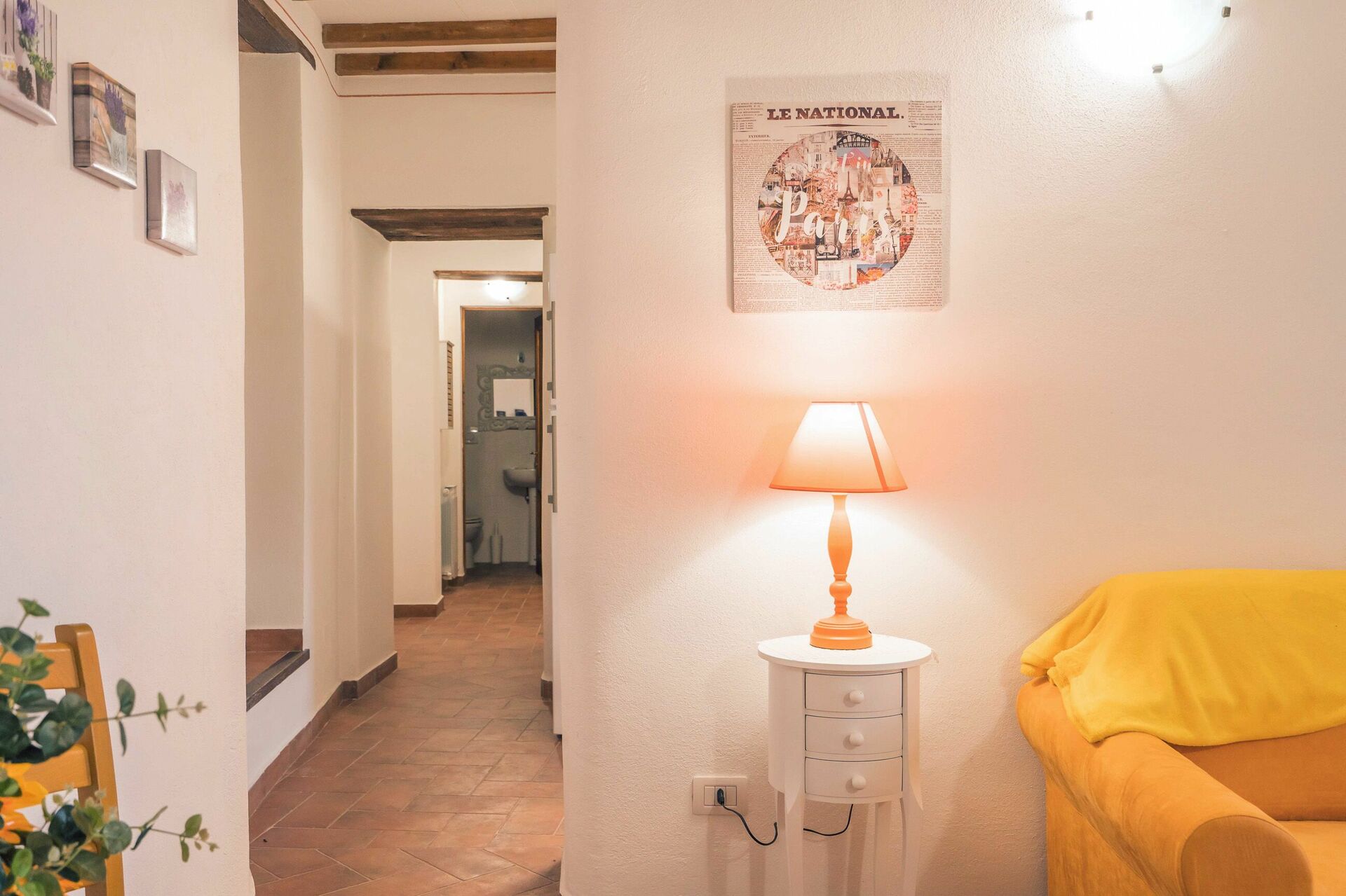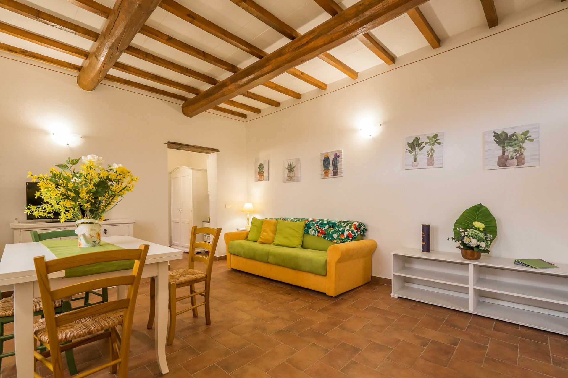 Kitchen + living room: well equipped kitchen, dining table (people: 4), fridge, microwave, stove top, american coffee machine, sofa (people: 3), WIFI internet, satellite tv, exit to the terrace.