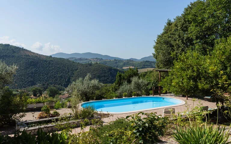 A cozy and comfortable villa "Farfa" in Salisano, Italy, offering a serene escape amidst nature. Situated at an elevation of 400 meters, this detached two-story property was built in 1990 and renovated in 2007, surrounded by trees and fields. Enjoy the convenience of a private park spanning 2,000 square meters, complete with a swimming pool (10 x 5 meters, depth 1.5 meters, available seasonally from June 1 to September 30). The villa is well-equipped with amenities such as an outdoor shower, patio, garden furniture, a barbecue area, a children's playground, and on-site parking, making it an ideal vacation rental for families or groups seeking a comfortable and relaxing stay.