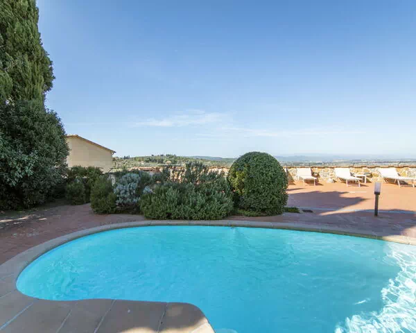 Nestled among trees atop a gentle hill just 200 meters from the historic center of Lucignano, in the heart of Tuscany, Italy, Resort "La Smarrita Dei Carradori" is a semi-detached vacation rental that was fully renovated in 2020. This exceptional property combines rustic charm with modern comforts, offering guests a serene and well-appointed retreat in one of the most picturesque corners of the Italian countryside. The resort benefits from a private fenced yard spanning 100 square meters, thoughtfully furnished with garden furniture to encourage outdoor relaxation and al fresco enjoyment. Guests have access to a covered parking area capable of accommodating up to 10 vehicles, ensuring effortless arrivals and departures. Throughout the stay, high-speed internet wifi keeps guests seamlessly connected without compromising the tranquil atmosphere of the surroundings. The property also features a swimming pool, providing an inviting space to cool off and unwind during warm Tuscan days. Whether you are seeking cultural exploration or peaceful seclusion, Resort "La Smarrita Dei Carradori" offers a prime base from which to experience the very best of the region.