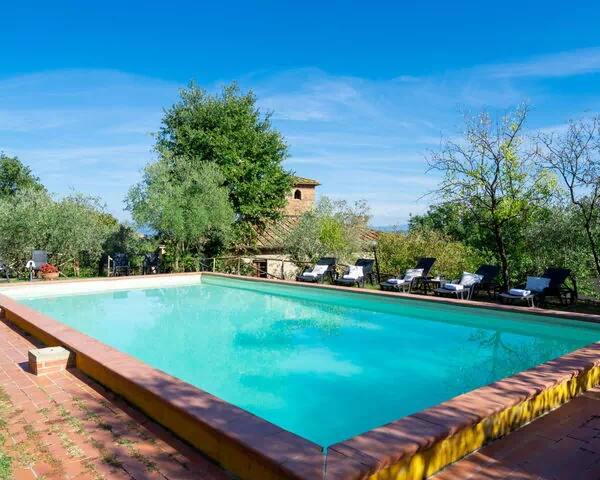 Poggio Cuccule is a magnificent vacation rental spanning 310 square meters across 2 levels, accommodating up to 16 guests across 8 bedrooms and 6 bathrooms, and featuring beautiful antique furnishings that lend the property a timeless charm.